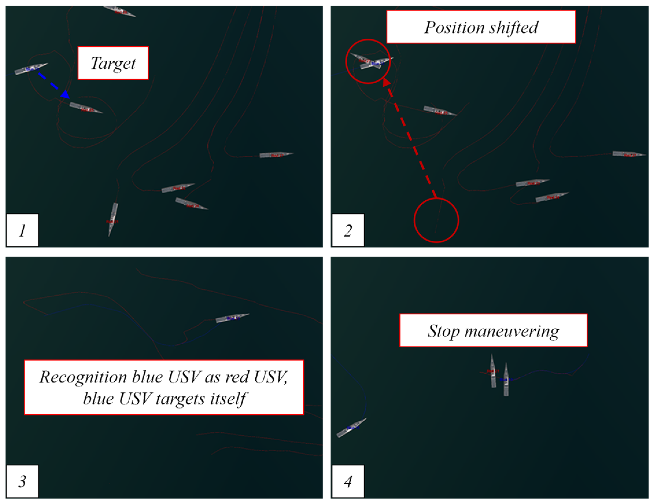 - Nantogma, S.; Pan, K.; Song, W.; Luo, R.; Xu, Y. Towards realizing intelligent coordinated controllers for multi-USV systems using abstract training environments. J. Mar. Sci. Eng. 2021, 9, 560. [Google Scholar] [CrossRef]