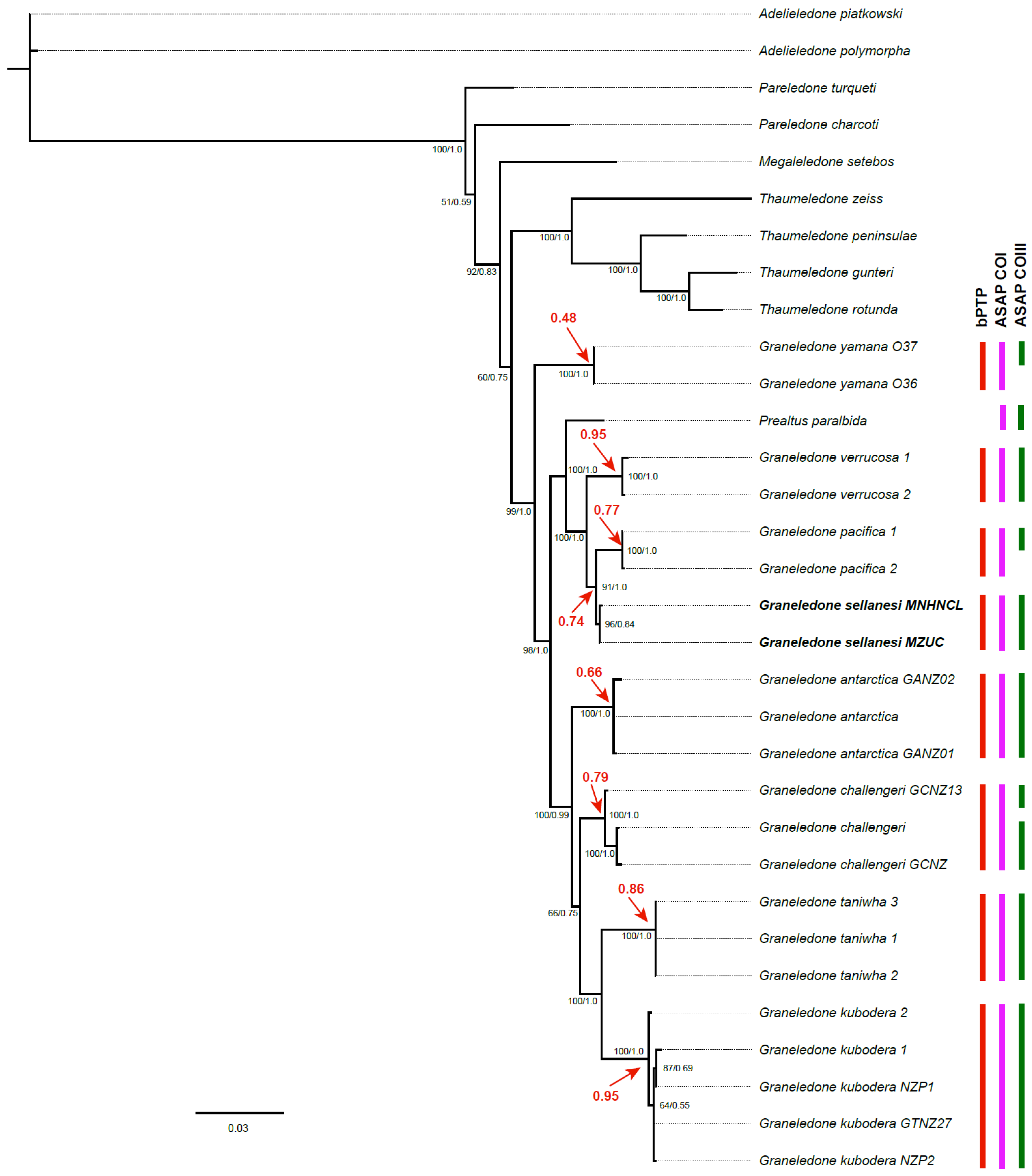 New Insights into the Molecular Phylogeny of Graneledone (Cephalopoda, Megaleledonidae) and Description of a New Species from the Southeastern Pacific Ocean †