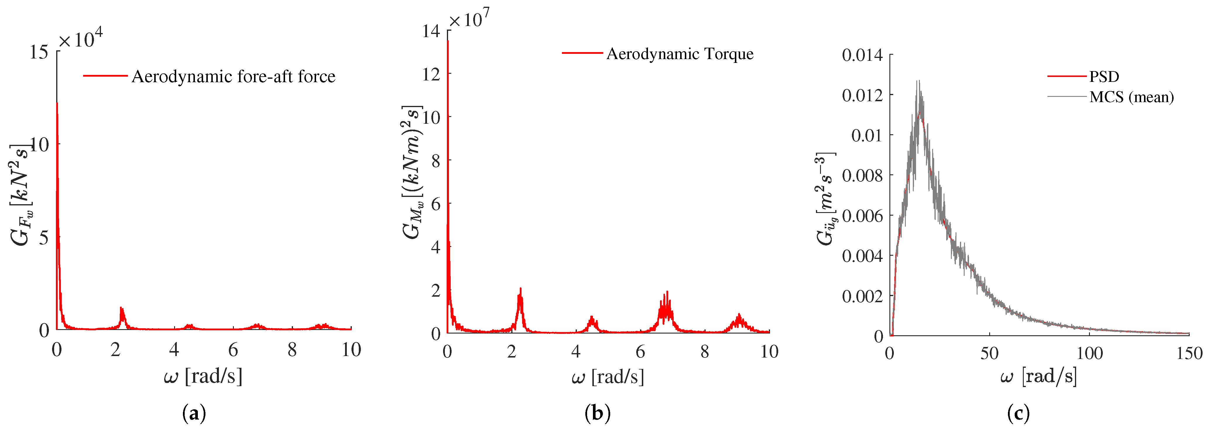 72) is used to obtain the power spectral density functions of the wind turbine response. The obtained PSD functions are reported for each investigated case in