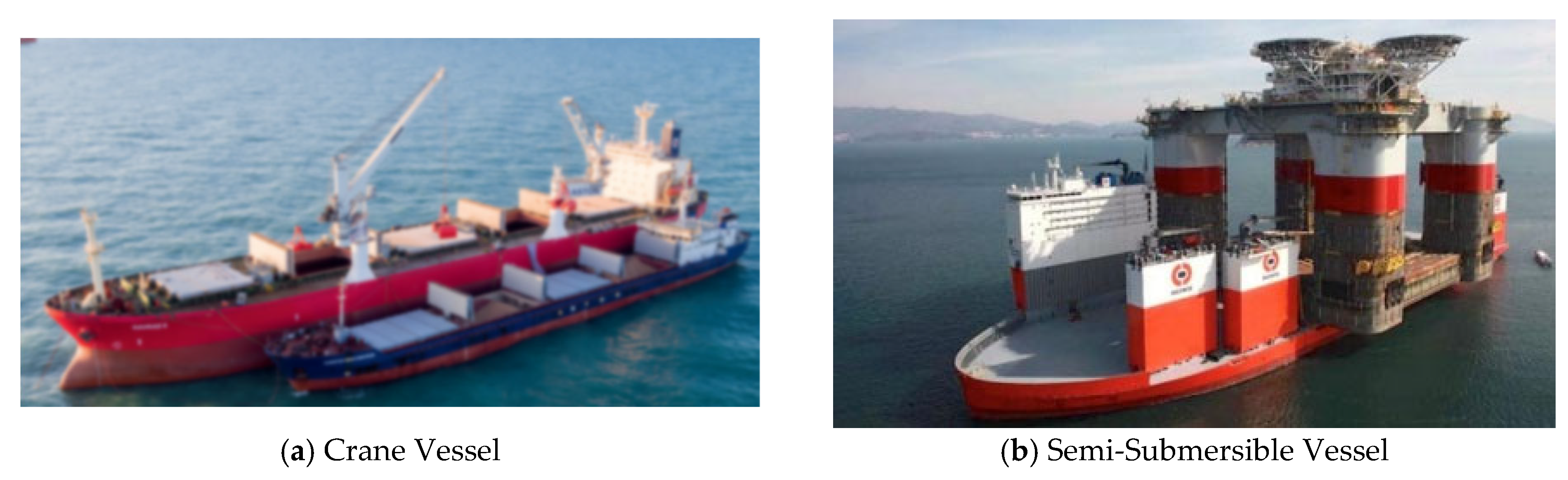 Figure 1 presents examples of a crane vessel and a docking platform.