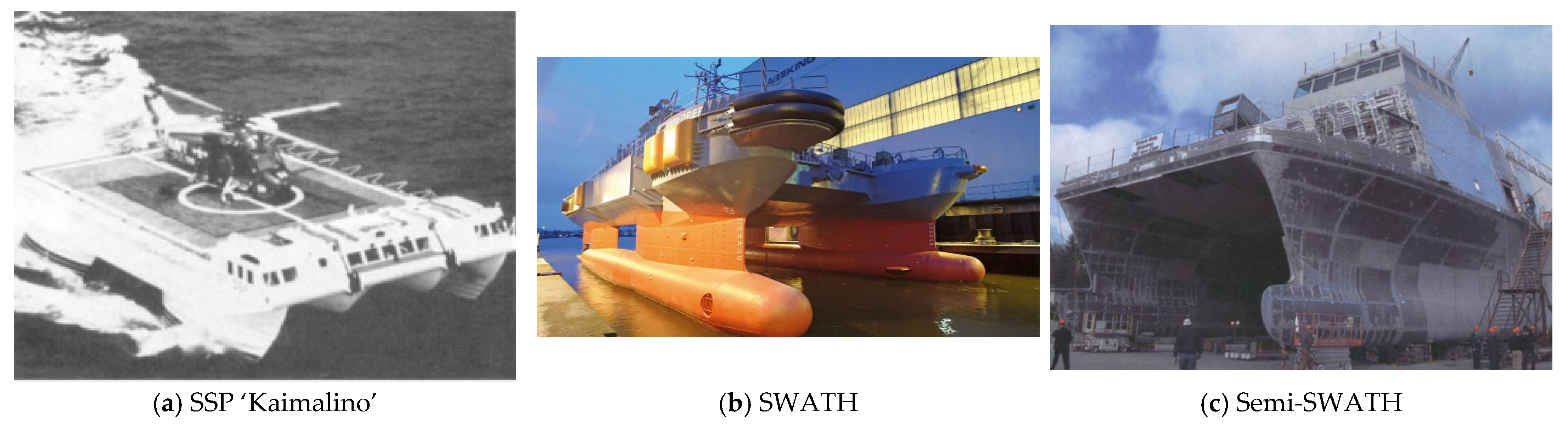 Figure 2 presents examples of the SSP vessel, a SWATH and a Semi-SWATH.