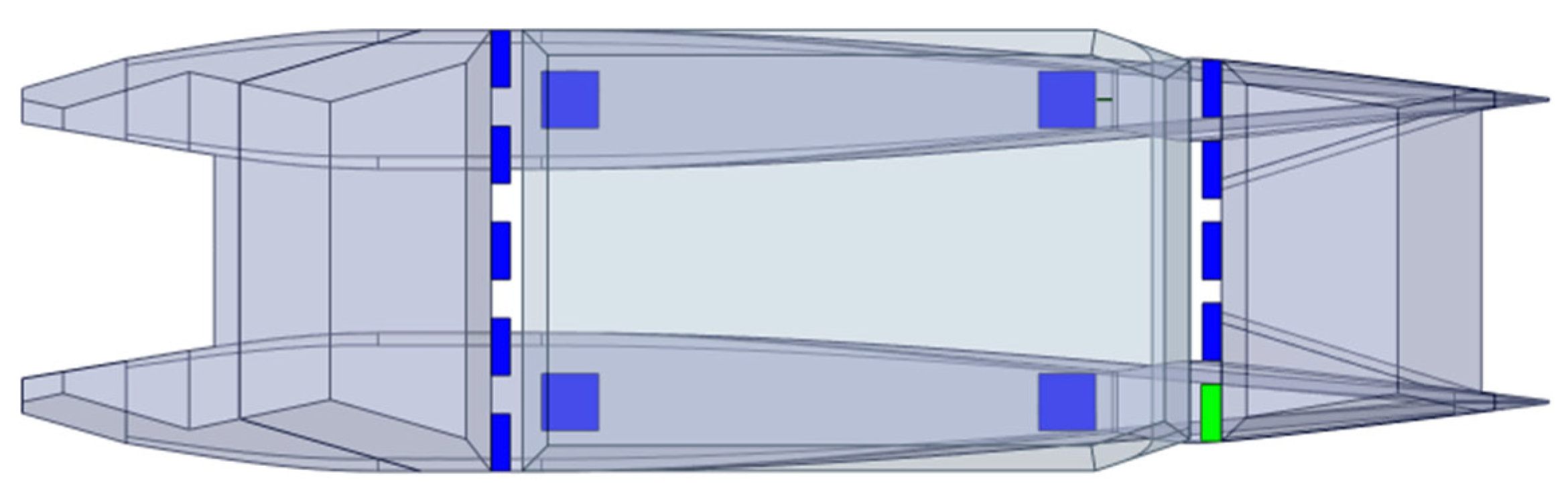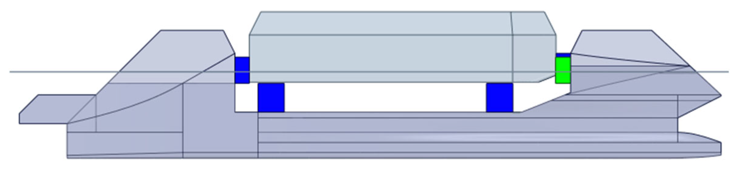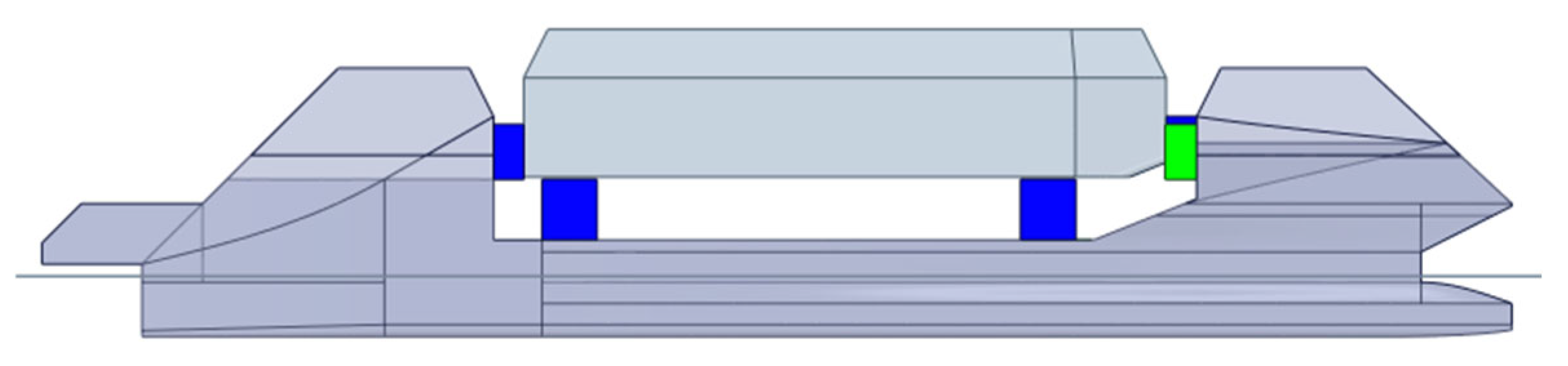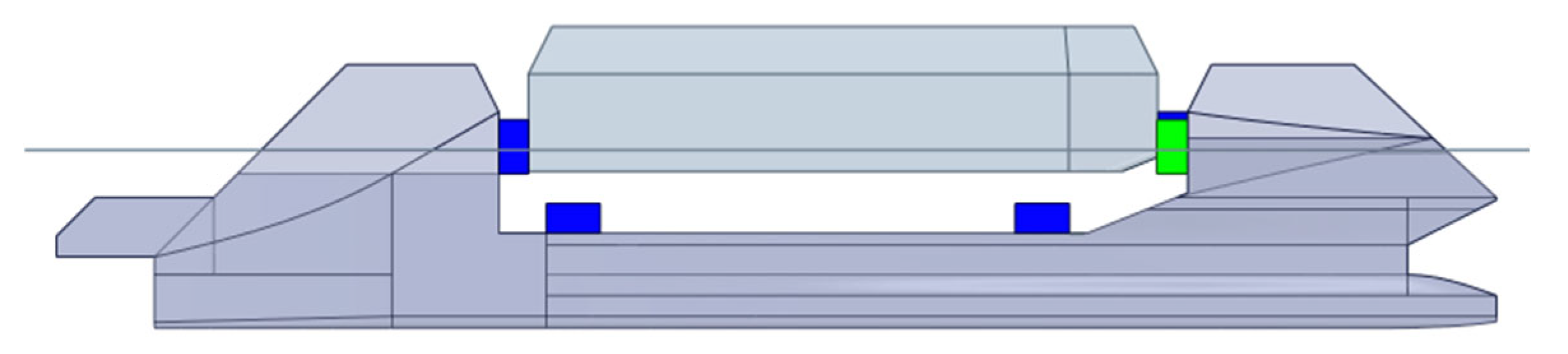 28] as a comprehensive reference for a complete formulation of the theory as well as the numerical formulation. The objective of our hydrodynamic analysis is to validate the applicability of launching or docking, as well as assessing the limit sea state. This critical design aspect is analyzed in the frequency domain (