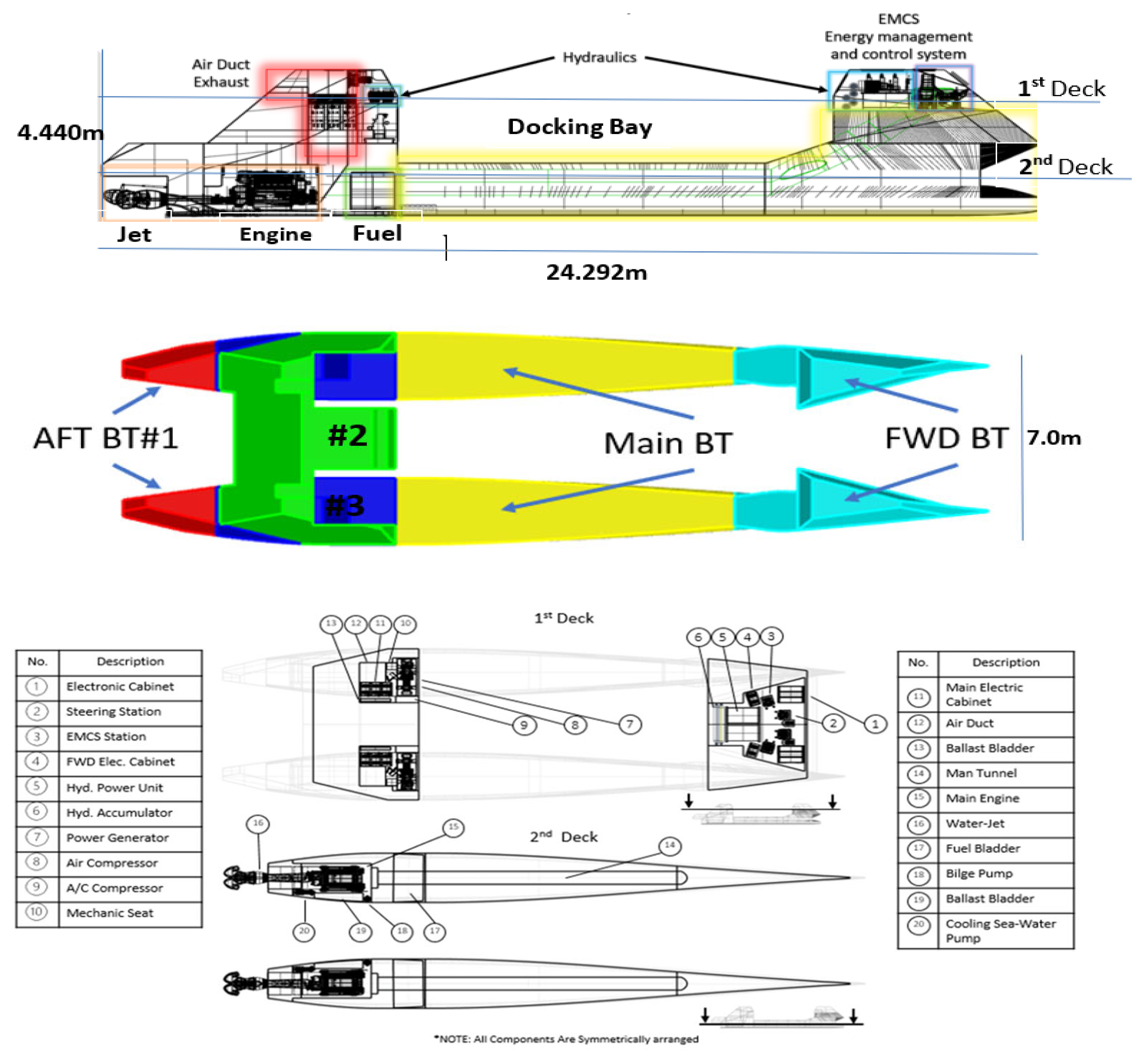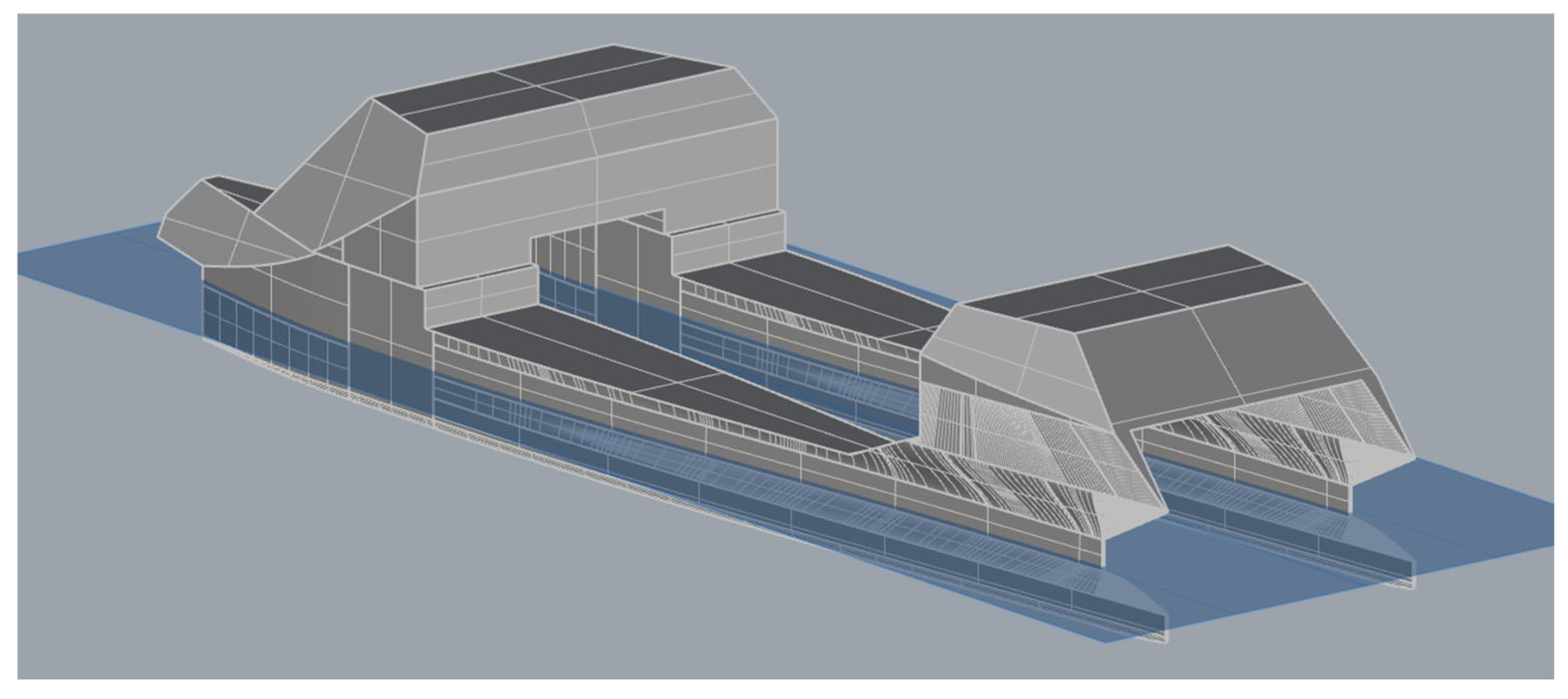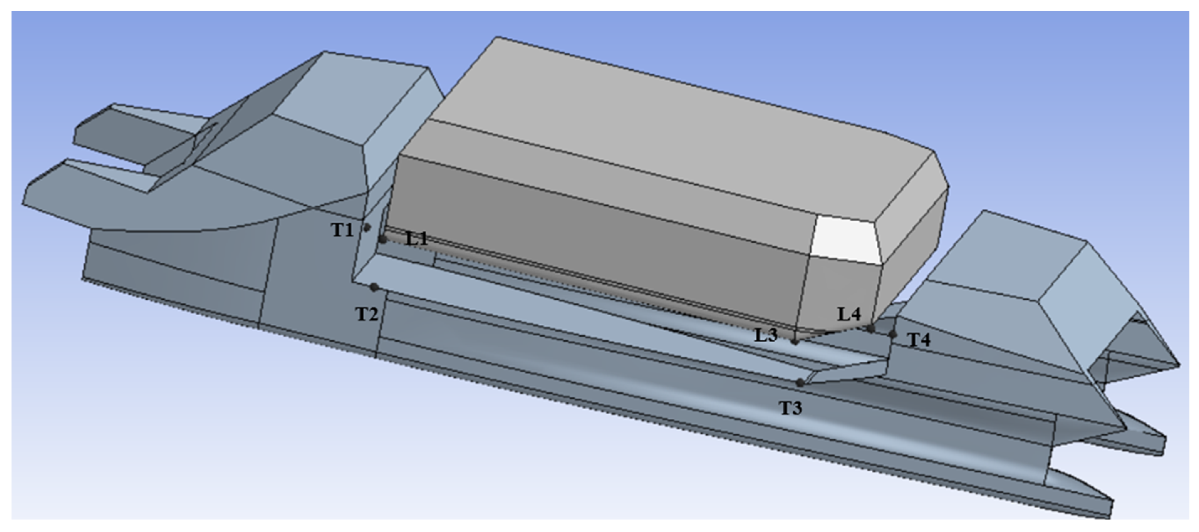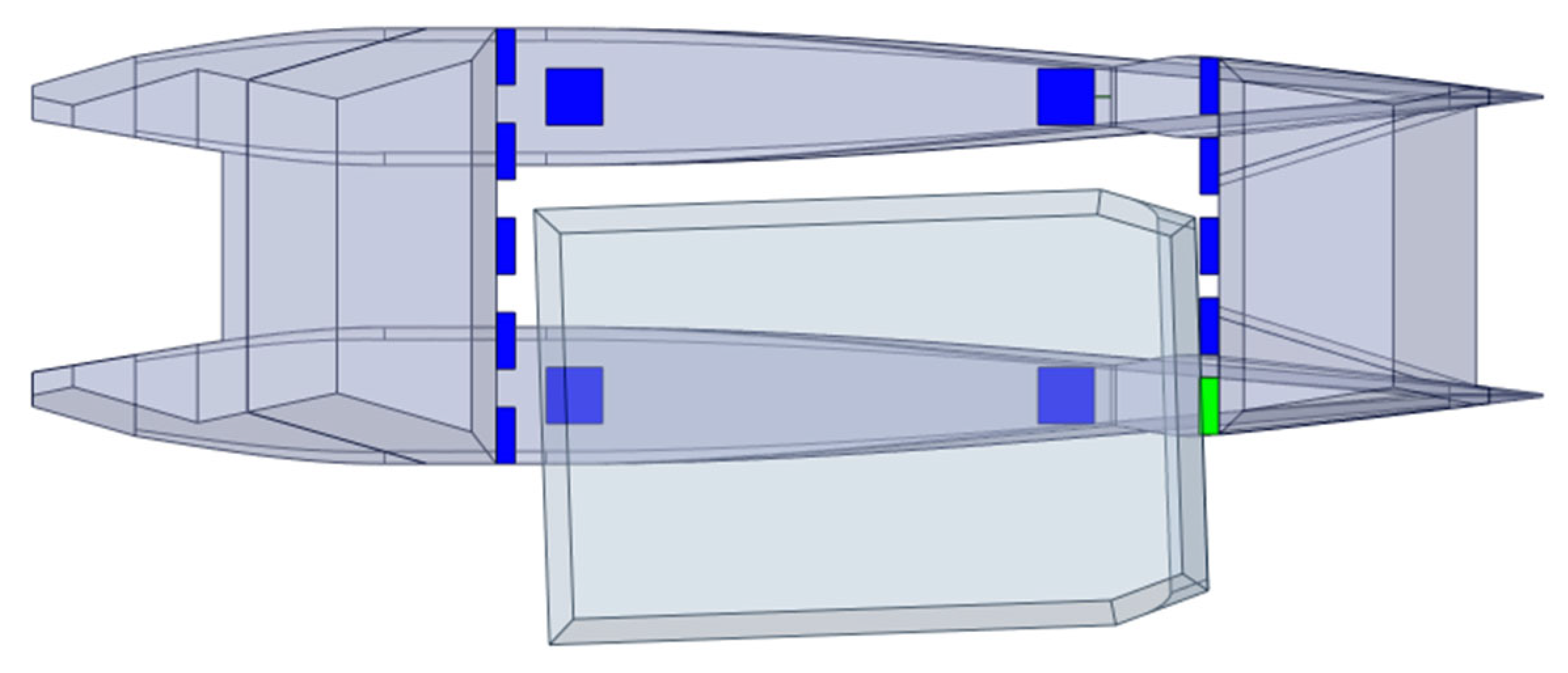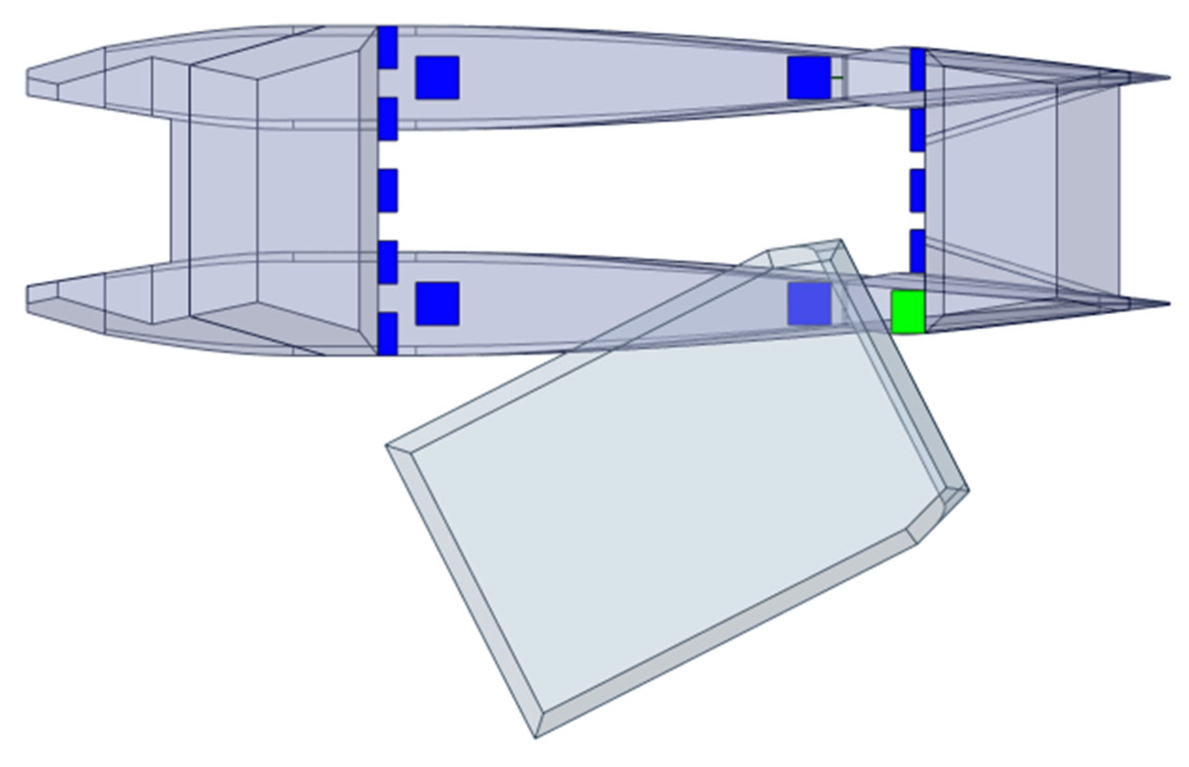 28] as a comprehensive reference for a complete formulation of the theory as well as the numerical formulation. The objective of our hydrodynamic analysis is to validate the applicability of launching or docking, as well as assessing the limit sea state. This critical design aspect is analyzed in the frequency domain (