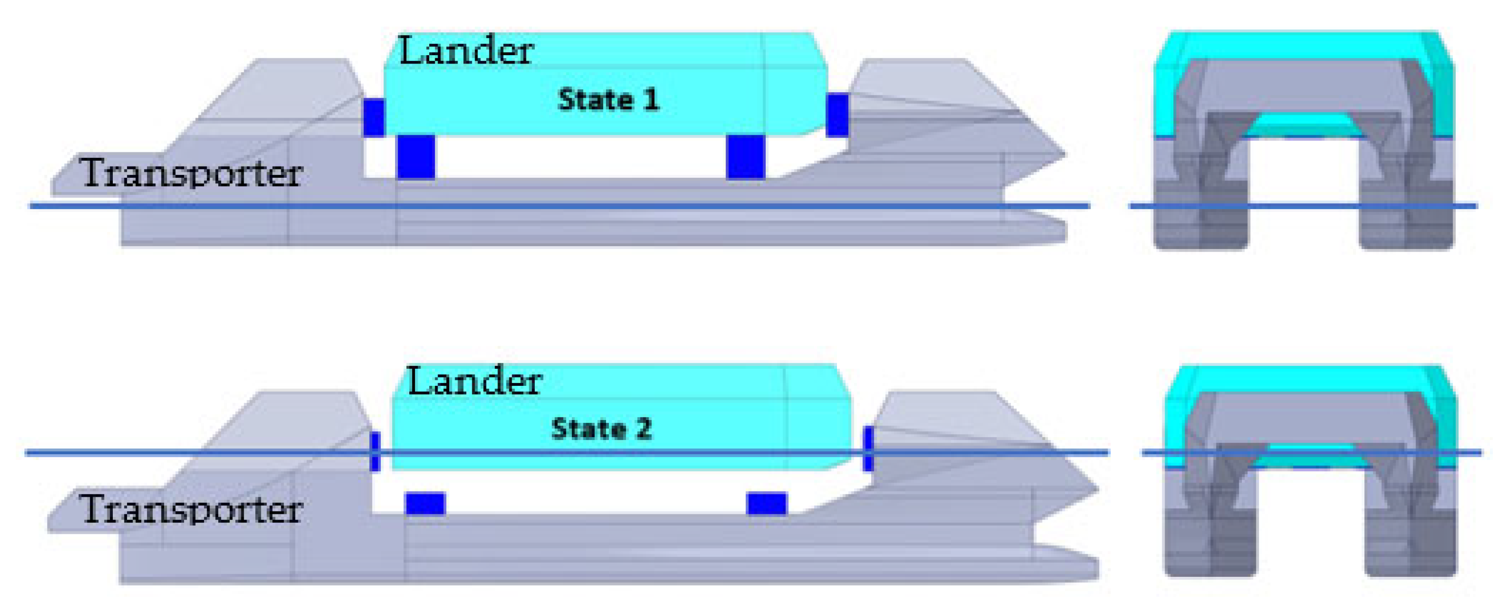 The integration of the lander with the transporter encompasses two states of floatation, each designed to specific operational requirements: