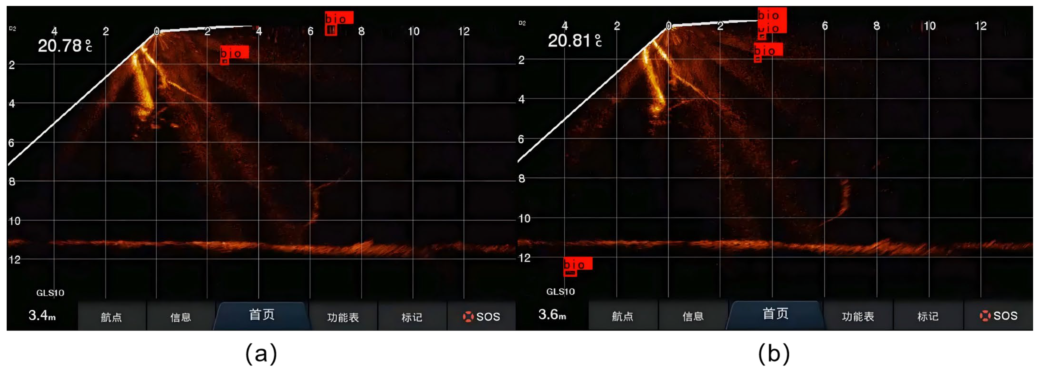 - Shen, W.; Liu, M.; Lu, Q.; Yin, Z.; Zhang, J. A fish target identification and counting method based on DIDSON sonar and YOLOv5 model. Fishes 2024, 9, 346. [Google Scholar] [CrossRef]