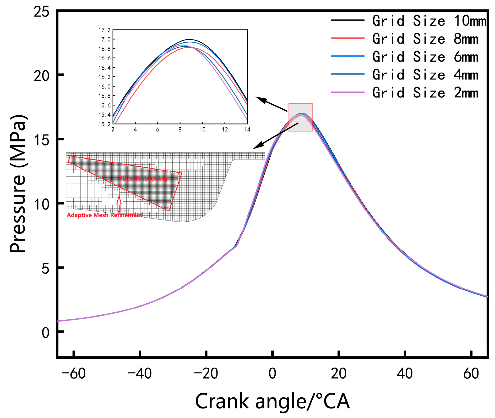- Liu, X.; Marquez, M.E.; Sanal, S.; Silva, M.; AlRamadan, A.S.; Cenker, E.; Sharma, P.; Magnotti, G.; Turner, J.W.; Im, H.G. Computational assessment of the effects of pre-chamber and piston geometries on the combustion characteristics of an optical pre-chamber engine. Fuel 2023, 341, 127659. [Google Scholar] [CrossRef]