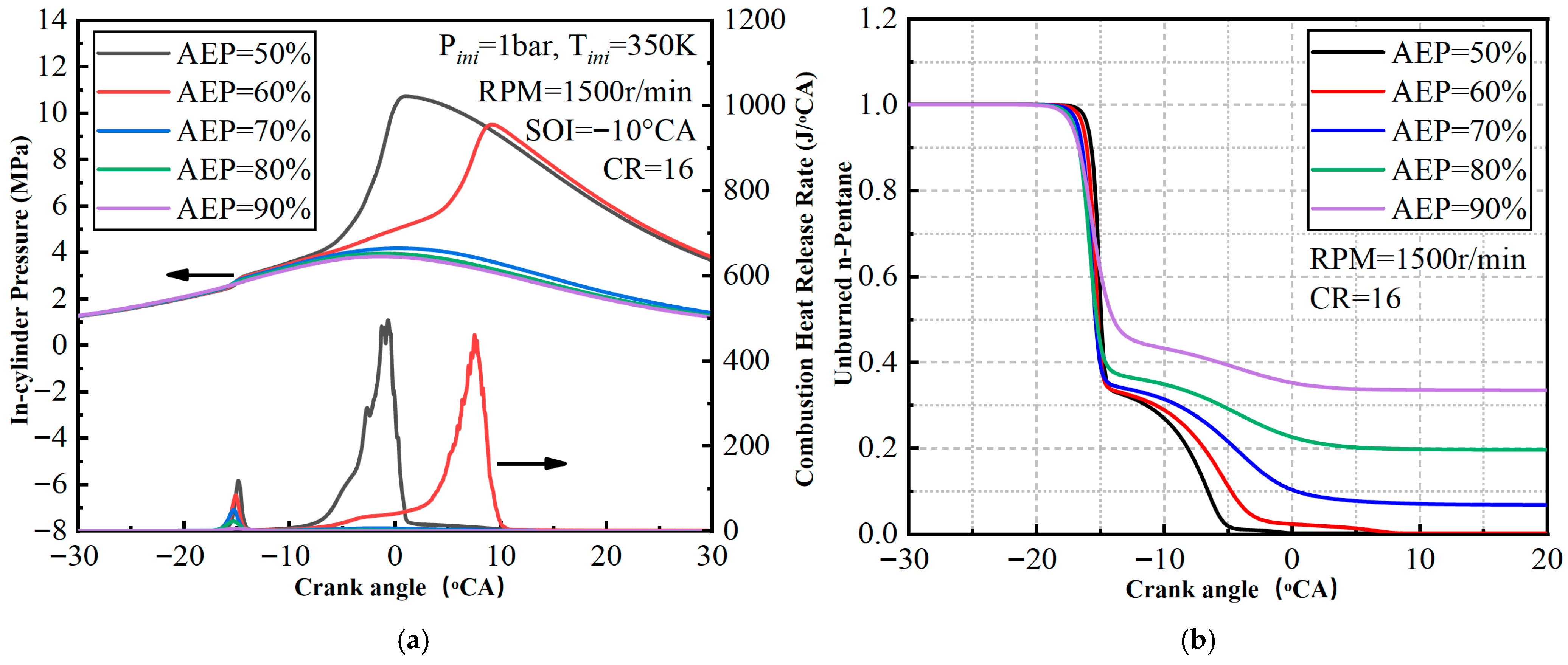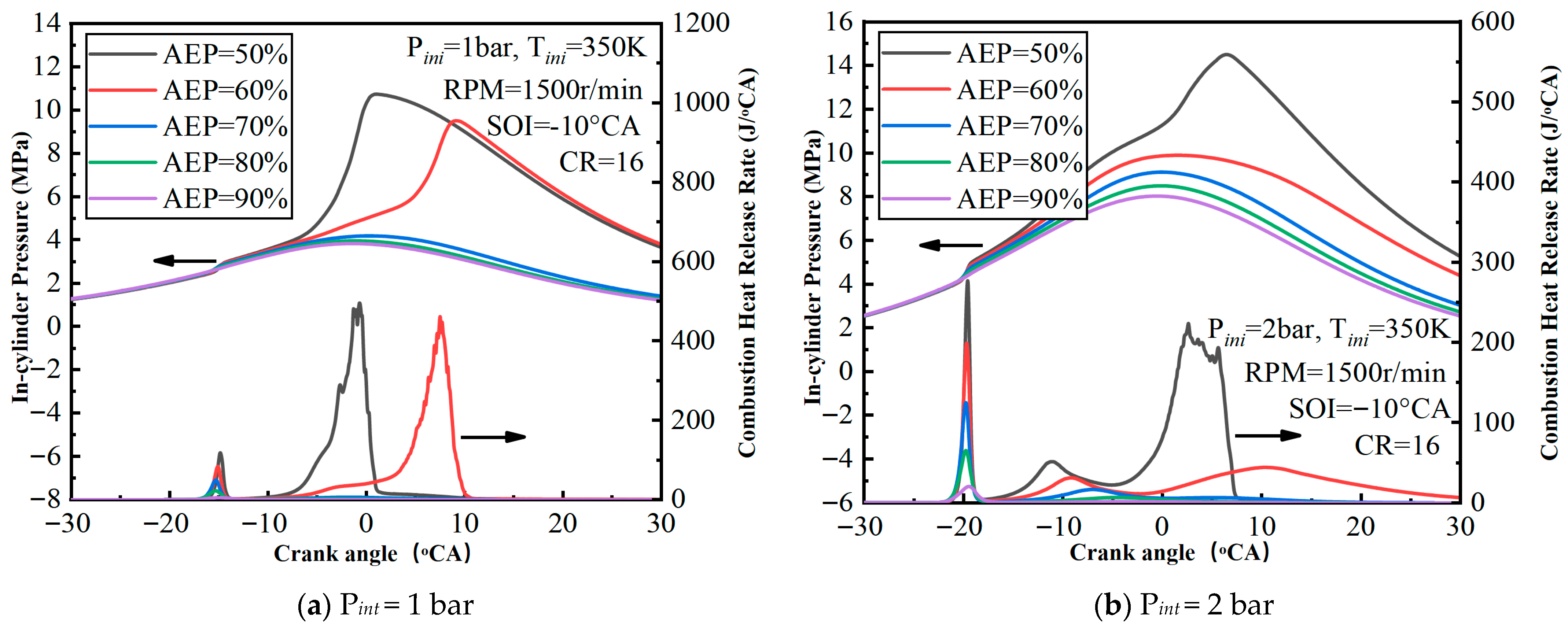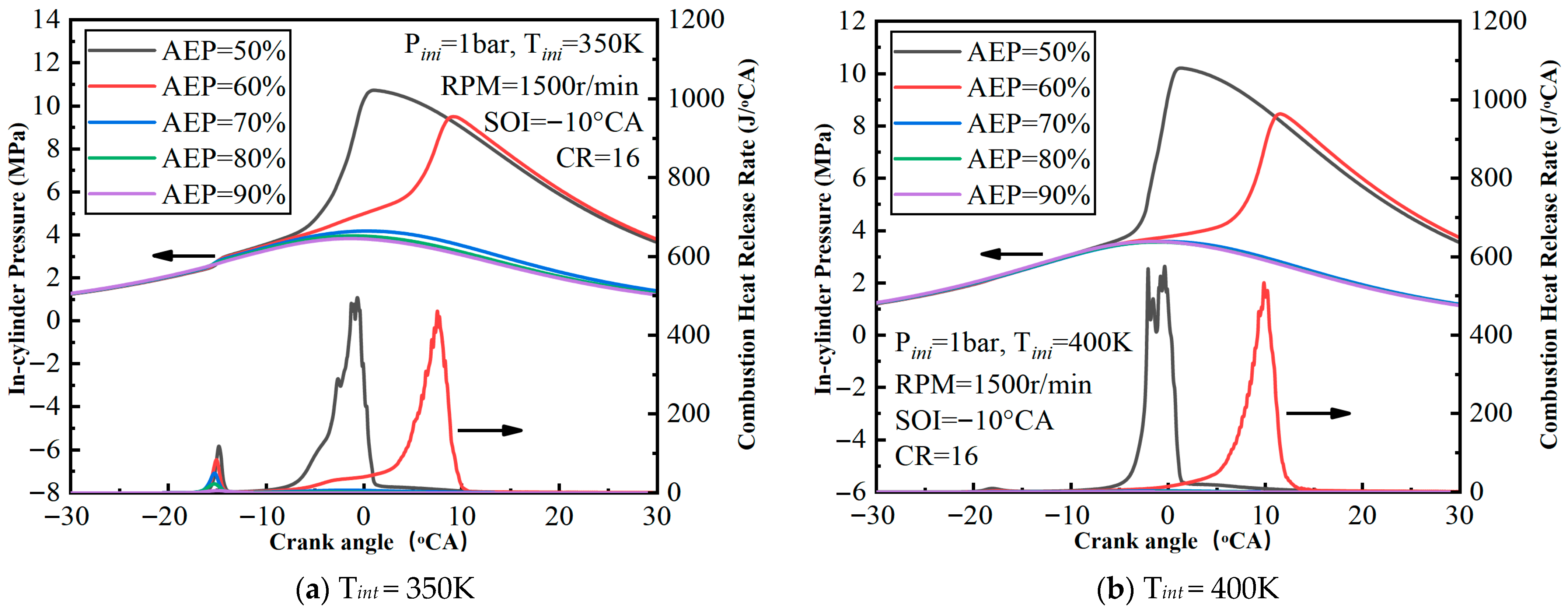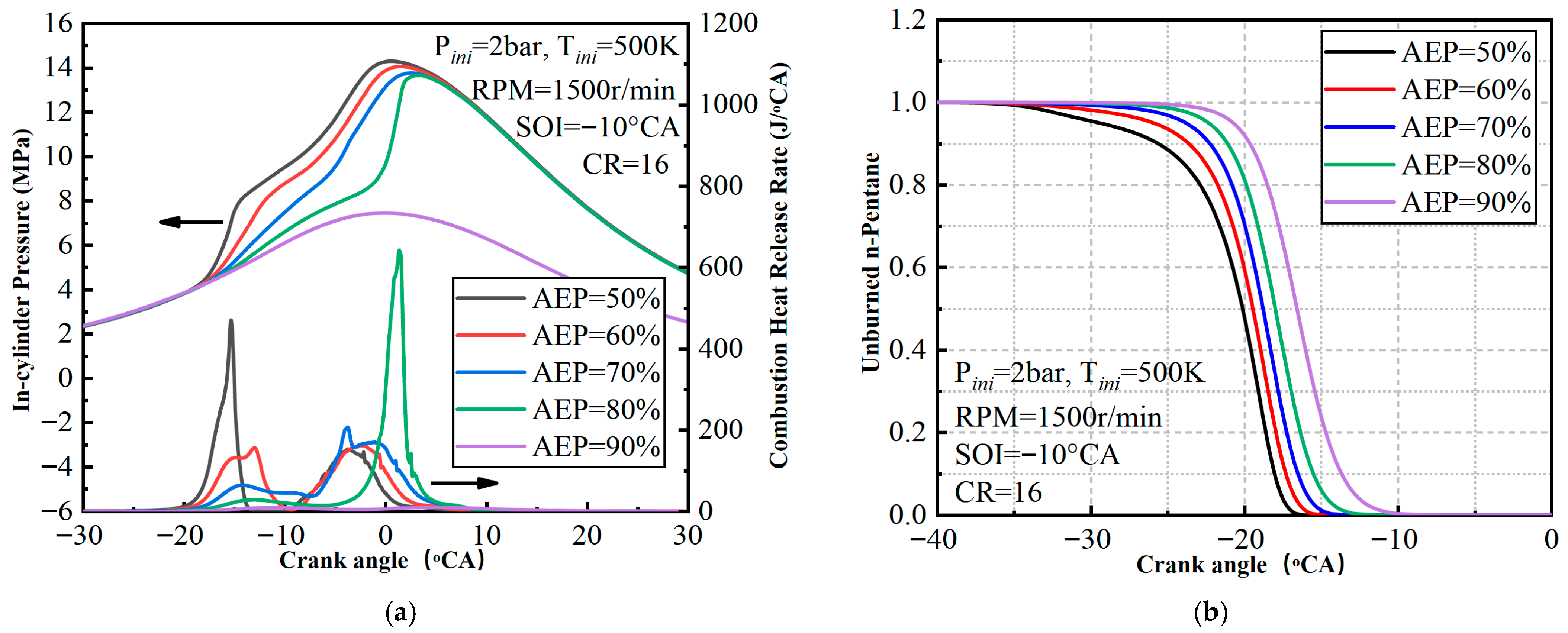 3.1. Analysis of the Impact of AEPs on Combustion Characteristics