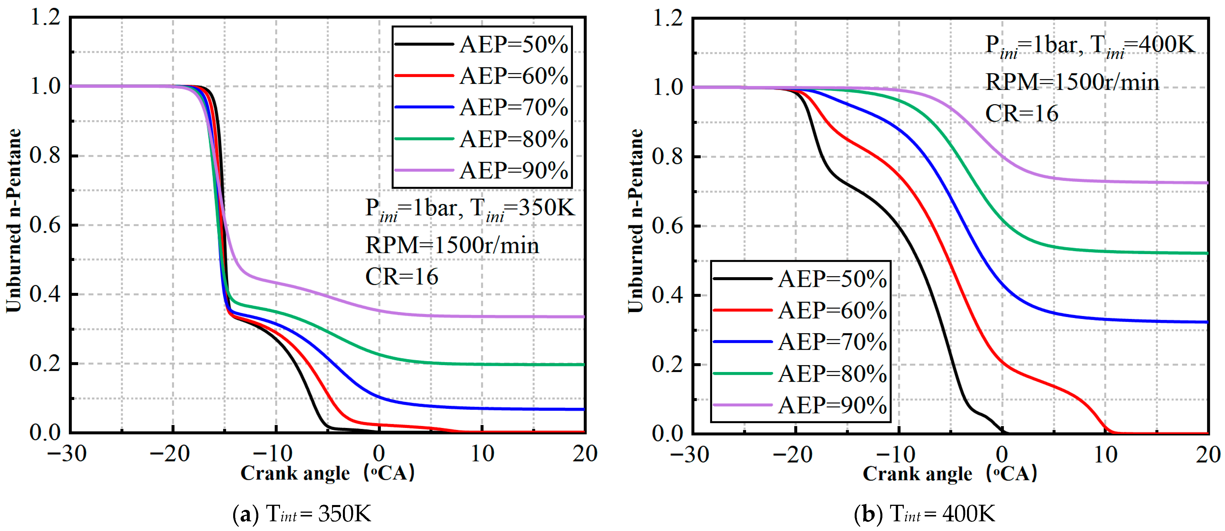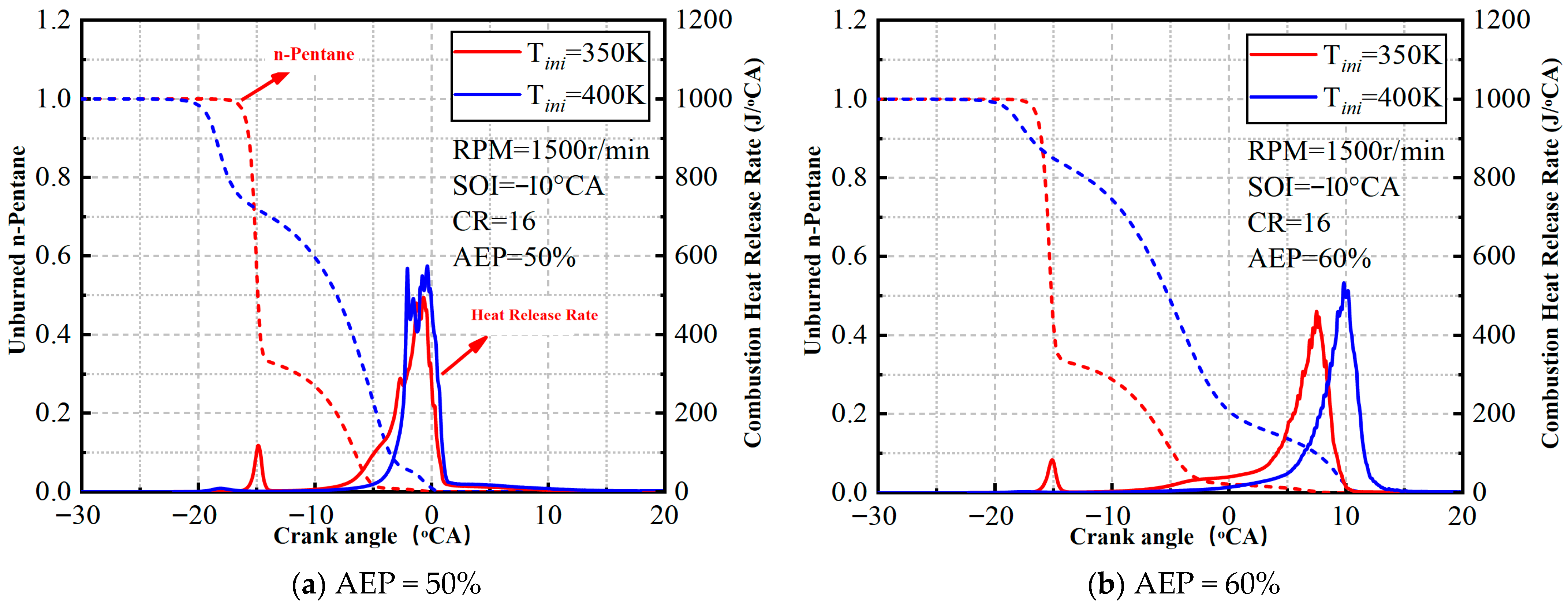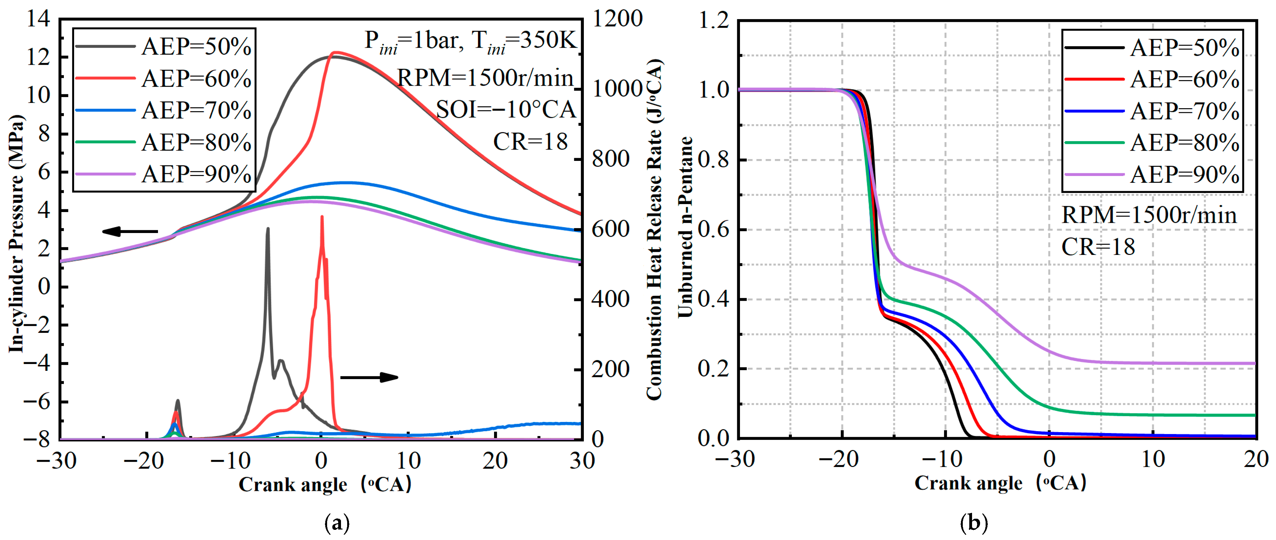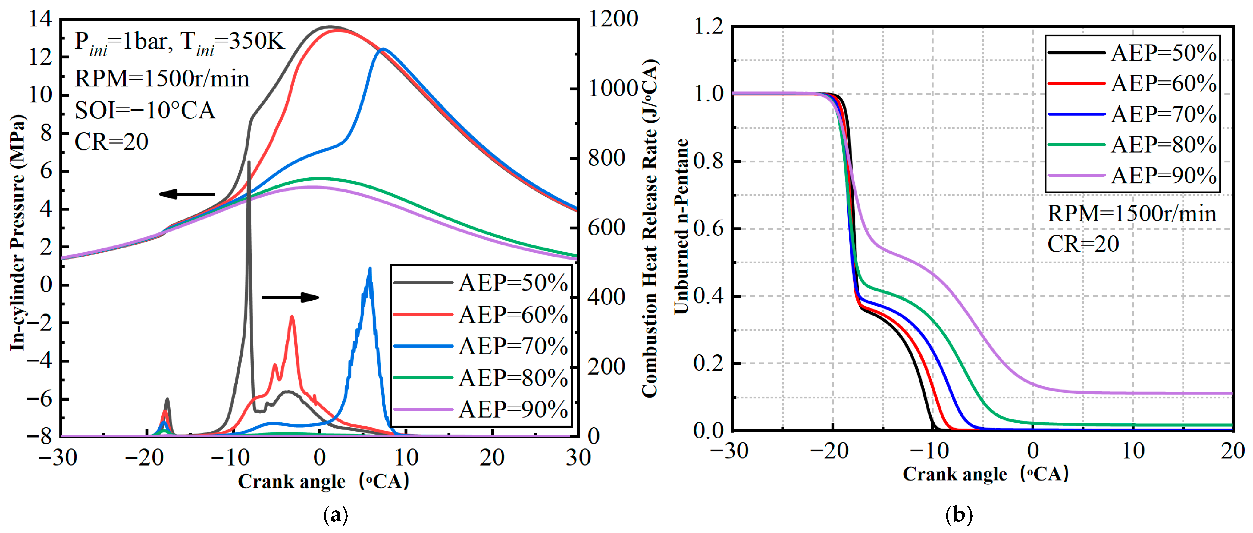 3.1. Analysis of the Impact of AEPs on Combustion Characteristics