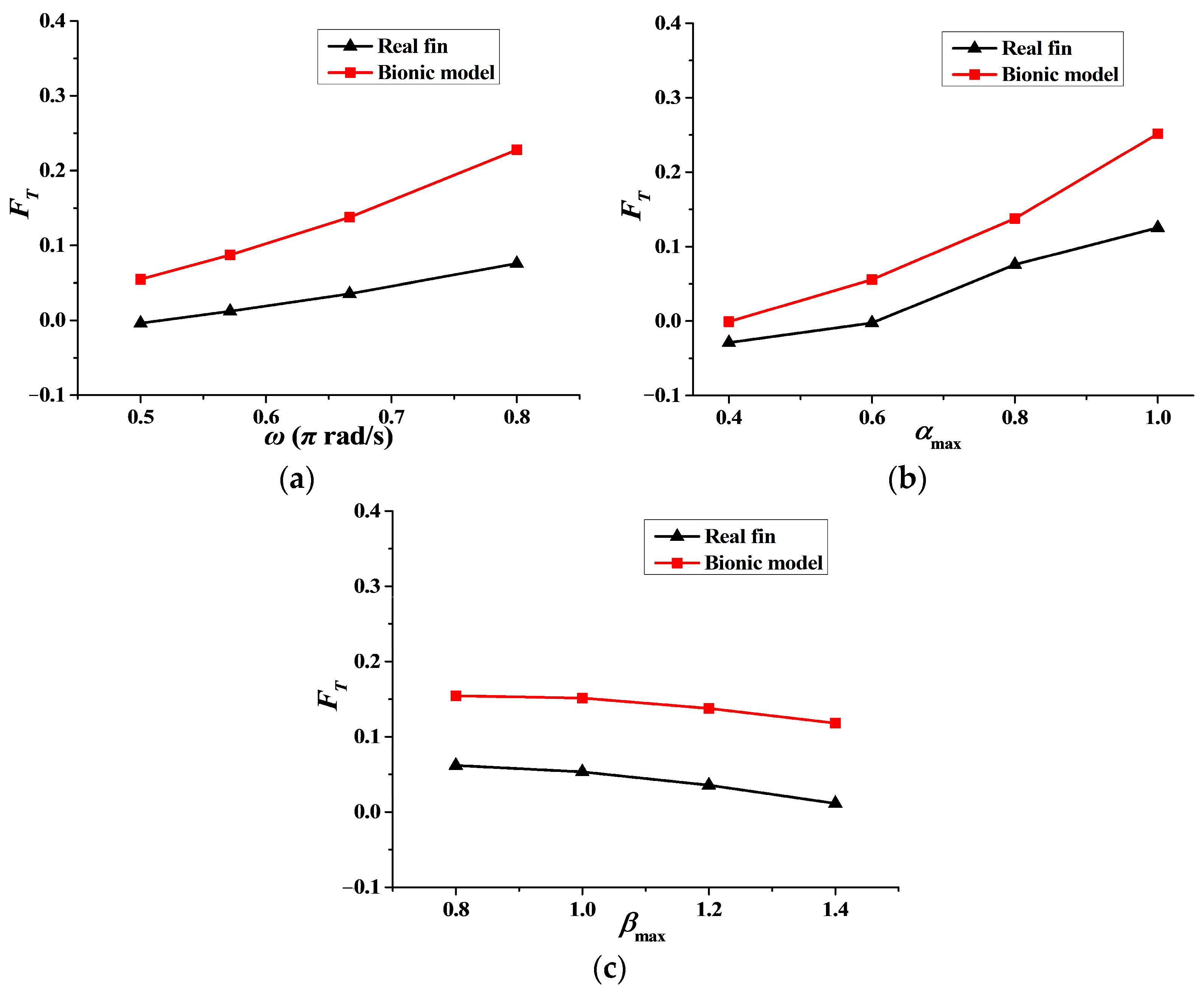 - Sheng, C.; Sun, Q.; Huang, H. Motion modeling and hydrodynamic analysis of pectoral fin. Ocean Eng. 2024, 310, 118769. [Google Scholar] [CrossRef]