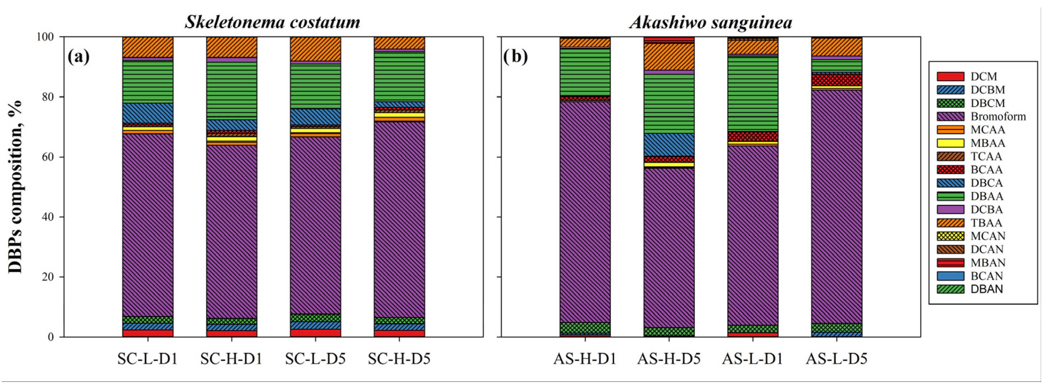 Influence of Dominant Phytoplankton Species on Disinfection By-Product Formation During Active-Substance Ballast Water Treatment: Skeletonema costatum vs. Akashiwo sanguinea