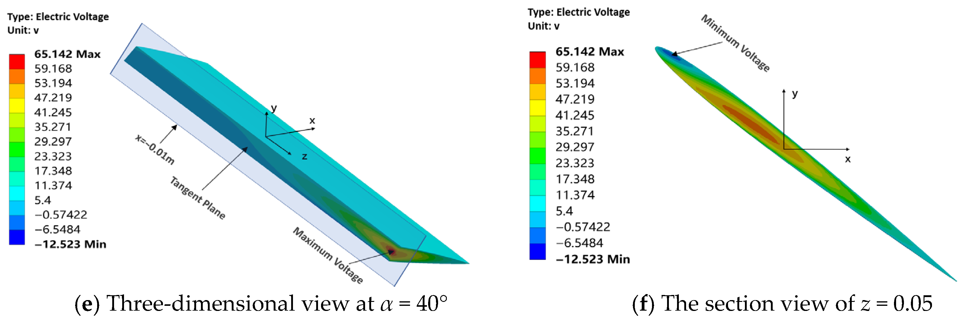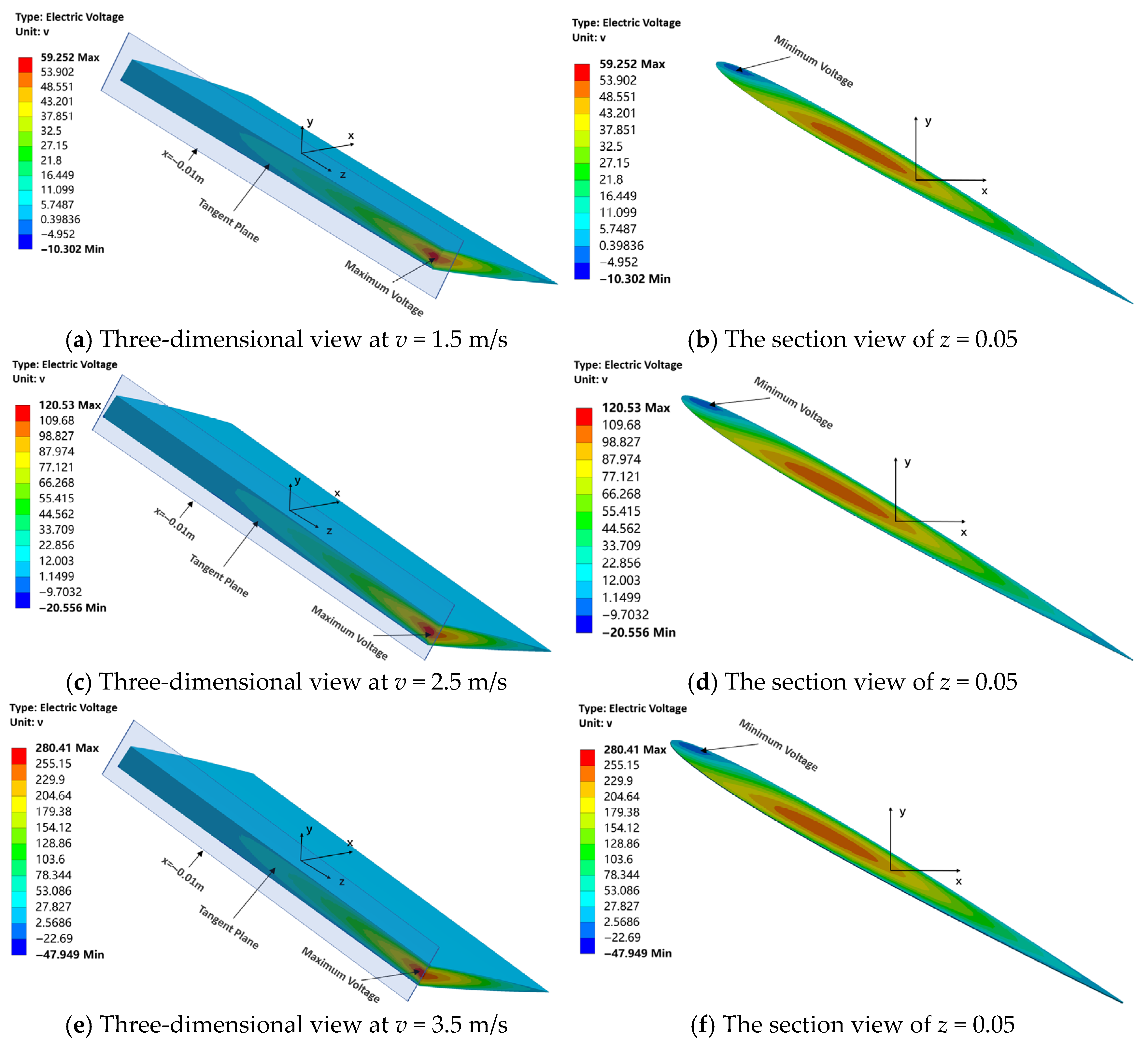4.4. Piezoelectric Field at Different Velocities of Incoming Flow
