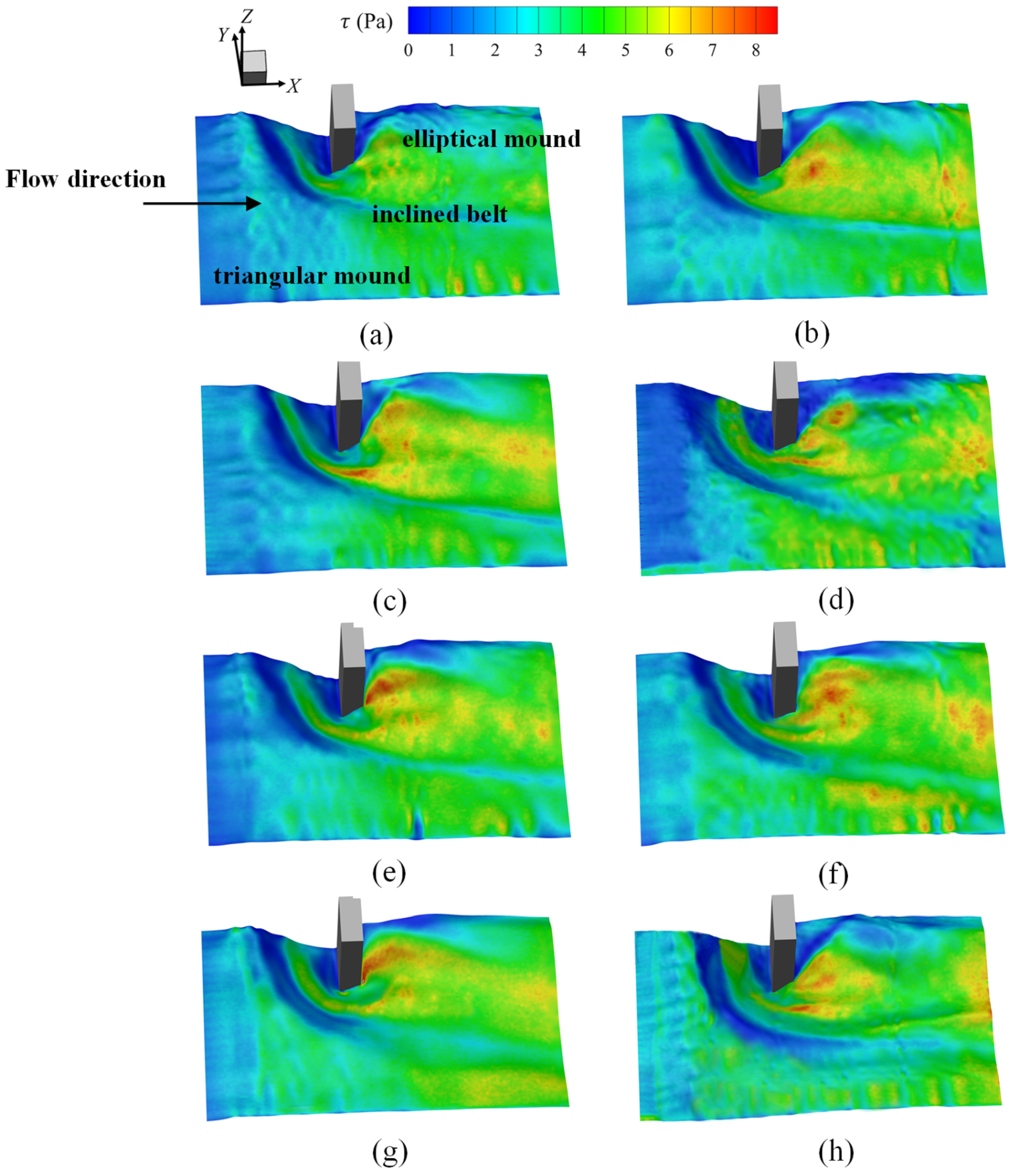 4.1.3. Distribution of Bed Shear Stress