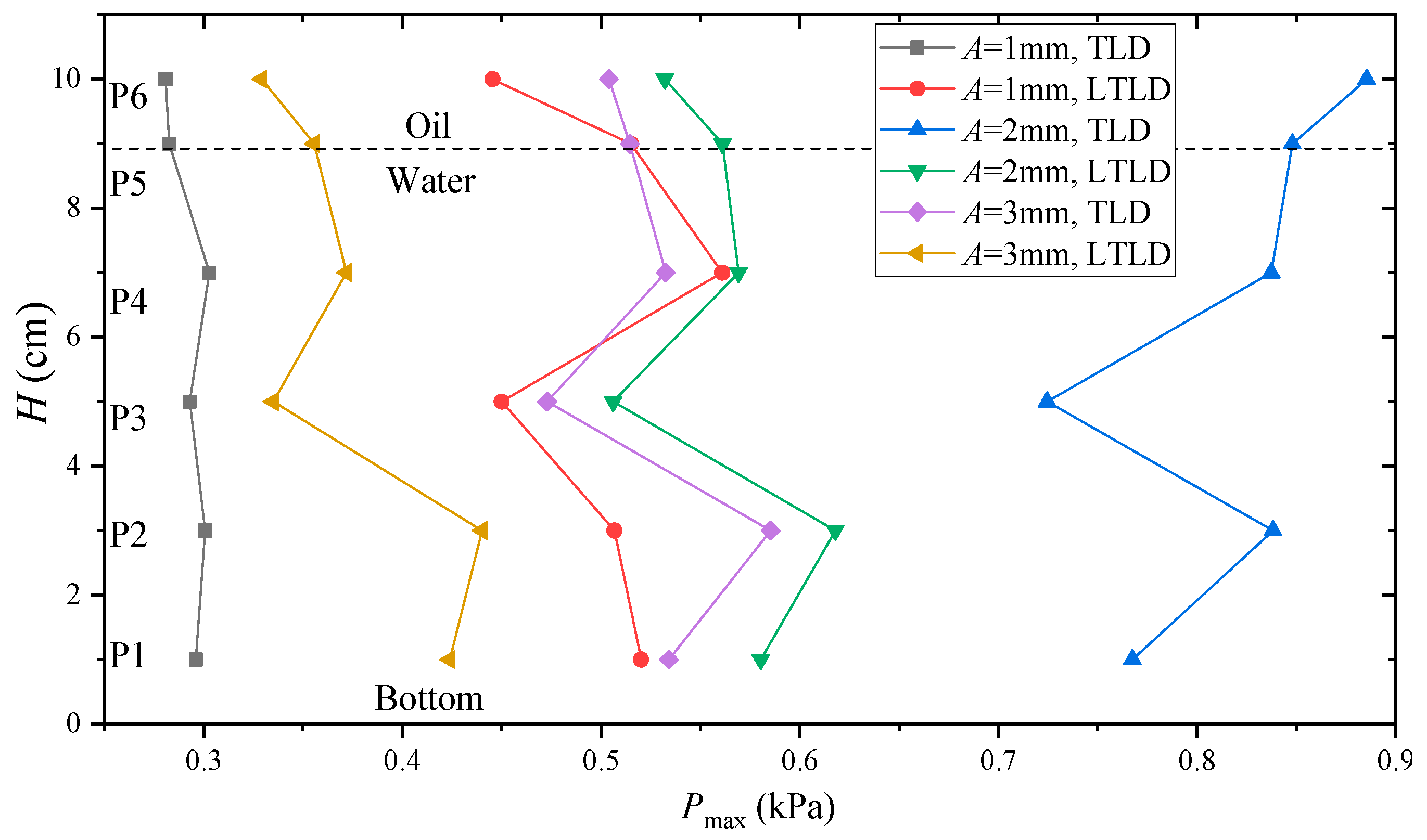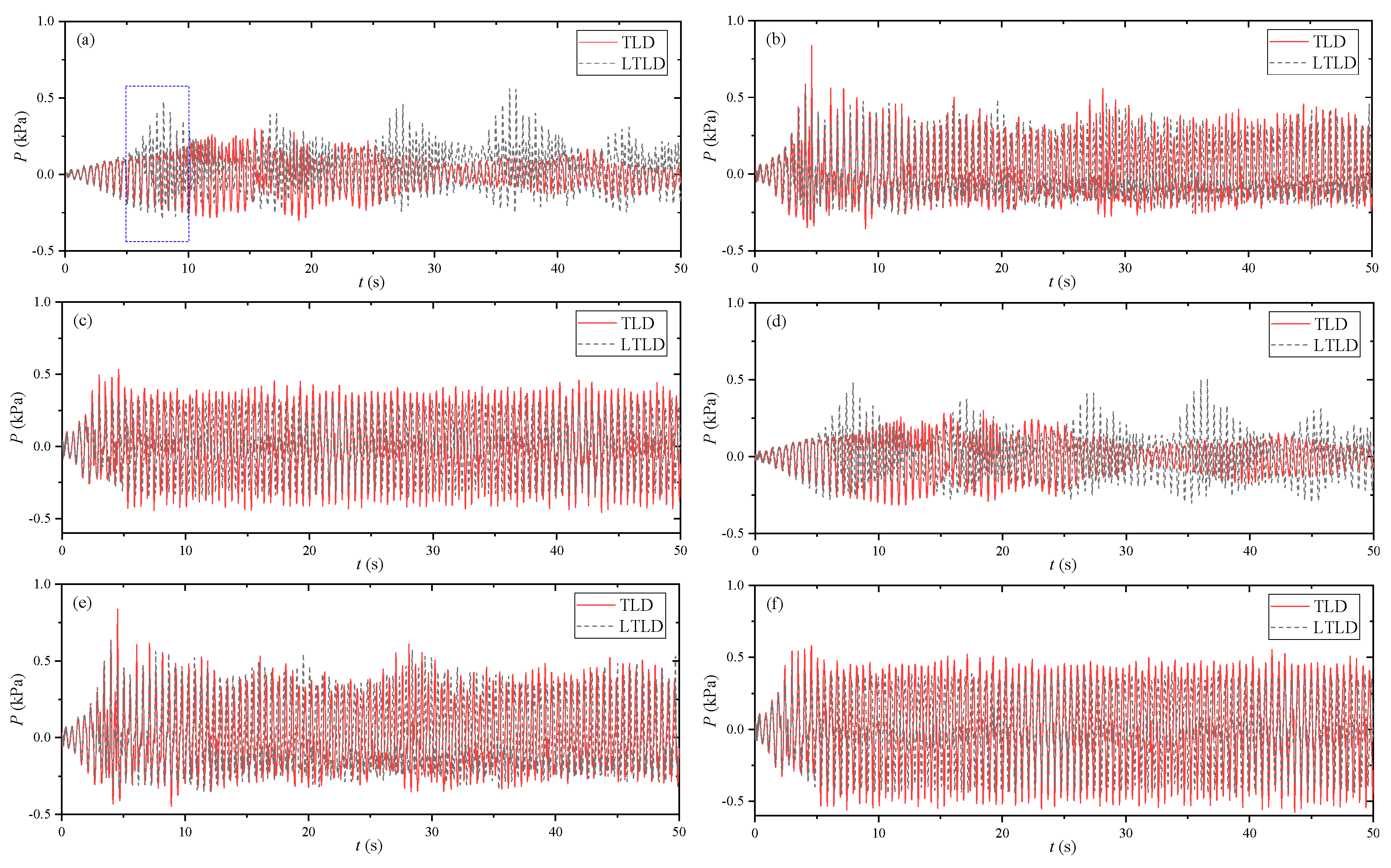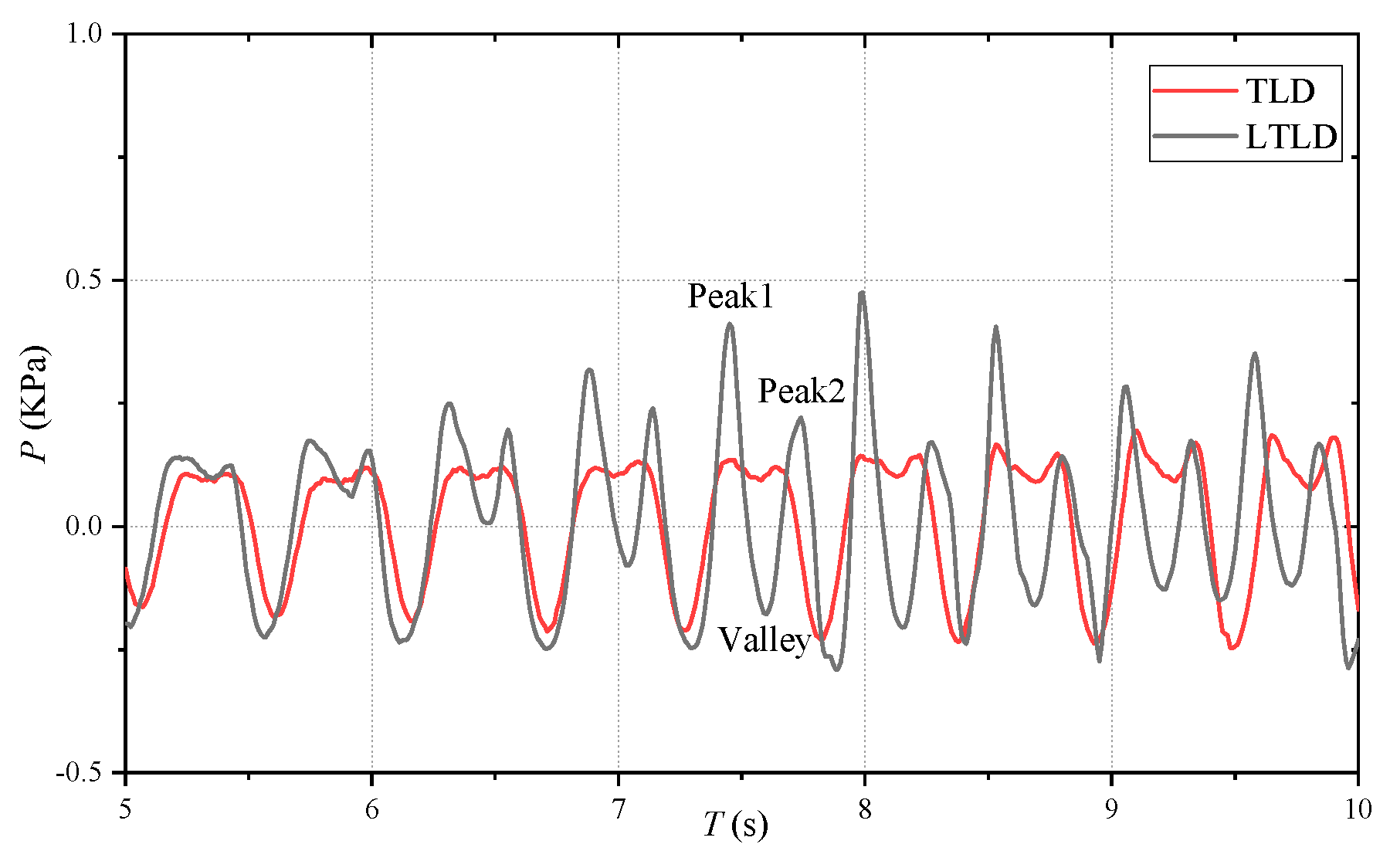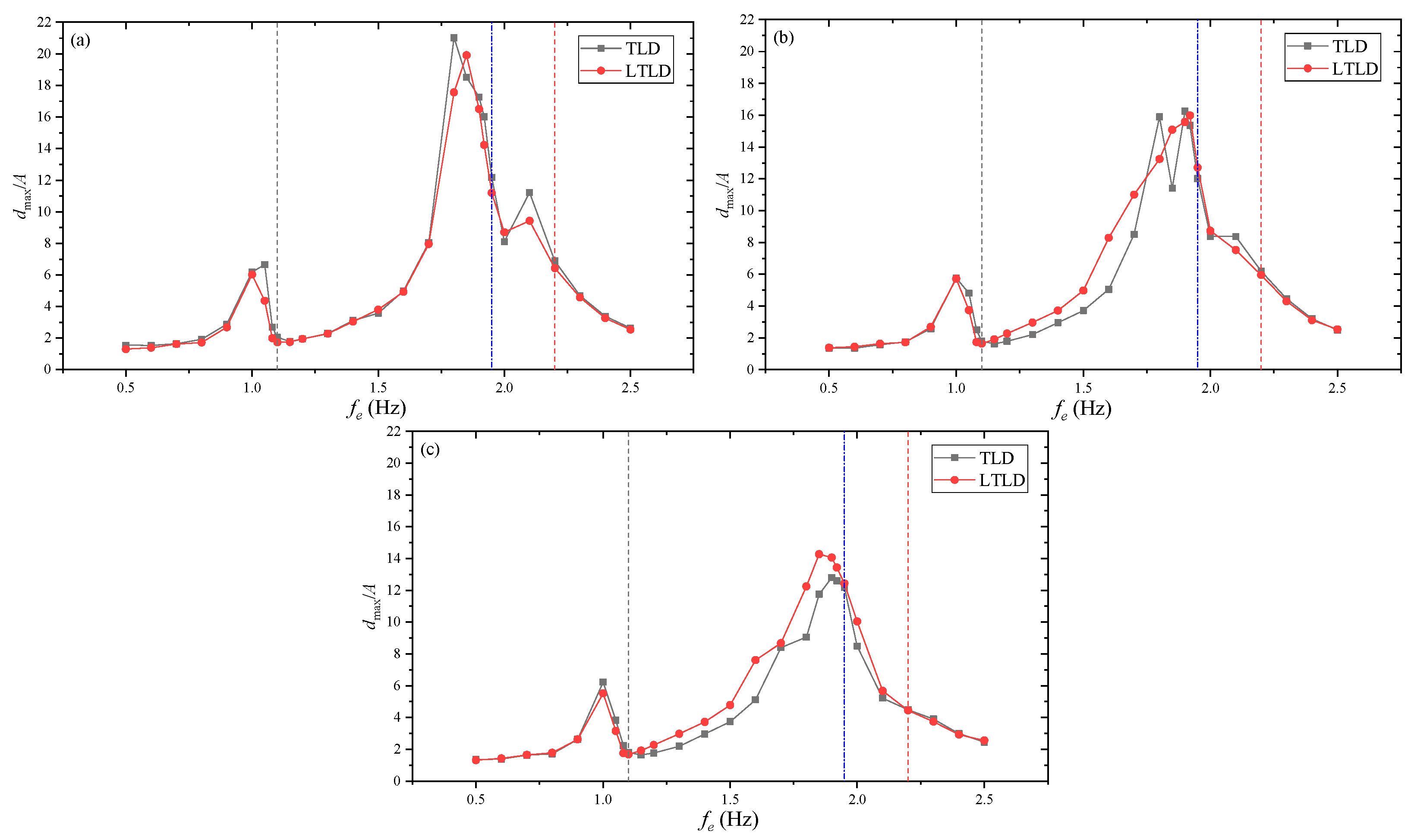 3.2. TLD and LTLD Performance in Suppressing Structural Vibration