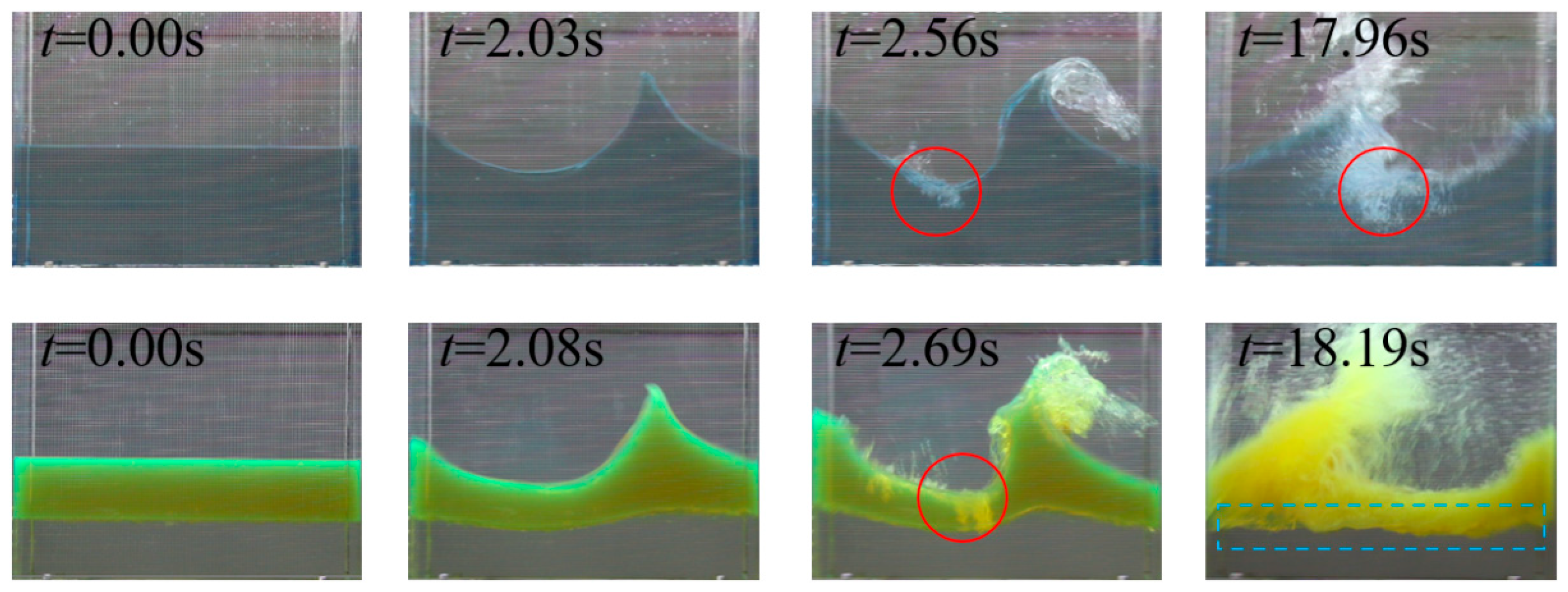 - Kim, K.S.; Kim, M.H.; Park, J.-C. Development of moving particle simulation method for multiliquid-layer sloshing. Math. Probl. Eng. 2014, 2014, 350165. [Google Scholar] [CrossRef]