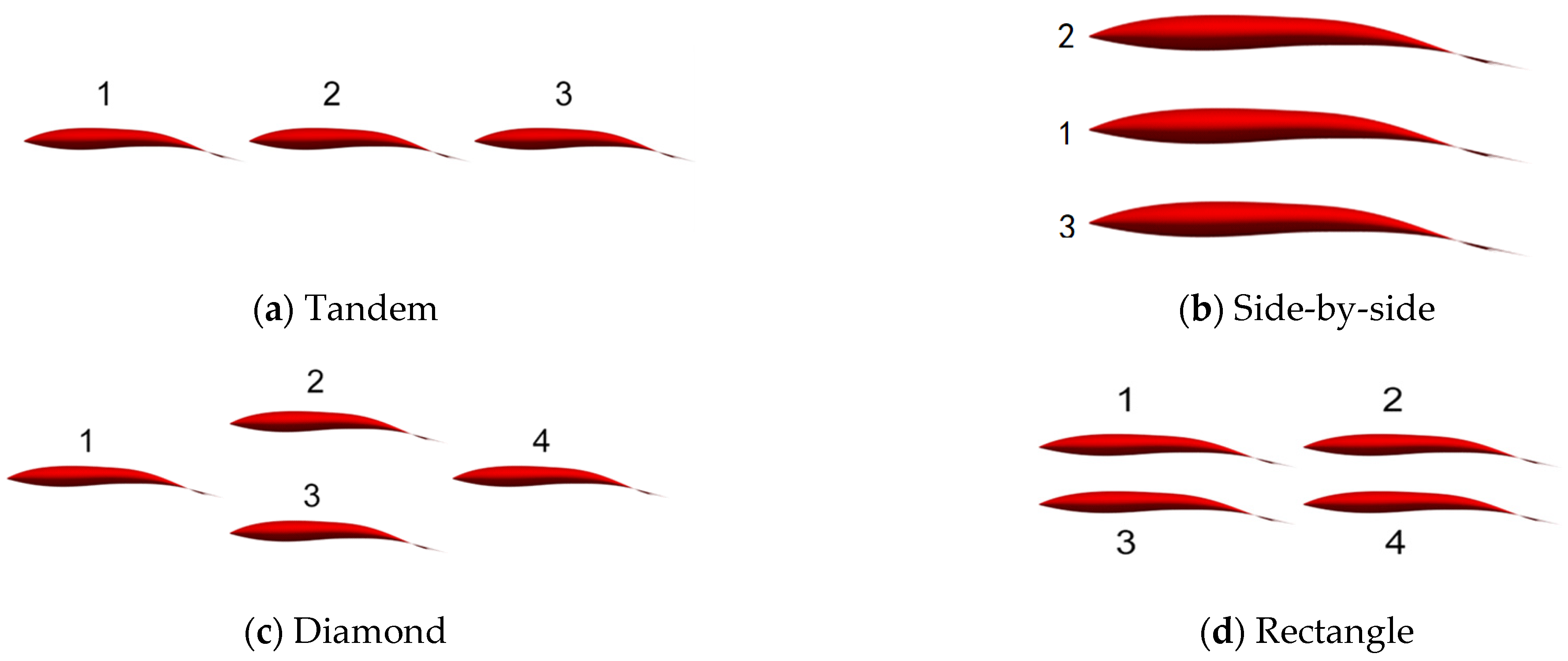 | Rectangular Formation | Streamwise spacing of 1.2L, Lateral spacing of 0.25L | Fish 4 |