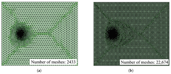 Mesh comparison: (a) Fine mesh with 2433 elements; (b) Ultra-fine mesh with 22,674 elements.