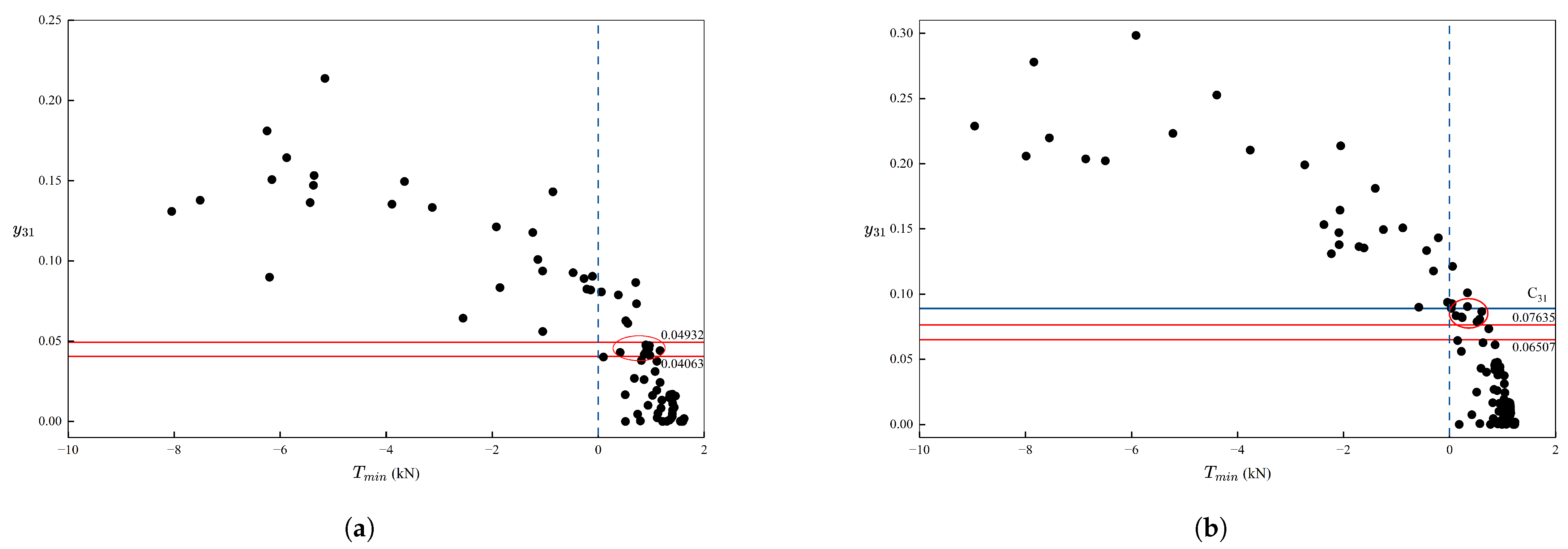 The proposed algorithm has demonstrated significant engineering value for cable-laying operations. However, this initially proposed algorithm involving candidate selection and beta factor screening is worthy of further investigation in several aspects, such as its applicable scope, robustness, and uncertainties. In particular, quantitative uncertainty analysis of the proposed framework in terms of rounding-down of , QoI ranking, and fitted thresholds is interesting and necessary to perform before broad engineering applications. Moreover, the effects of explicitly considering ship forward speed, current, and dynamic positioning system are worth investigation as well. In addition, future work could examine extending this algorithm to other marine operations, such as heavy lift operations.