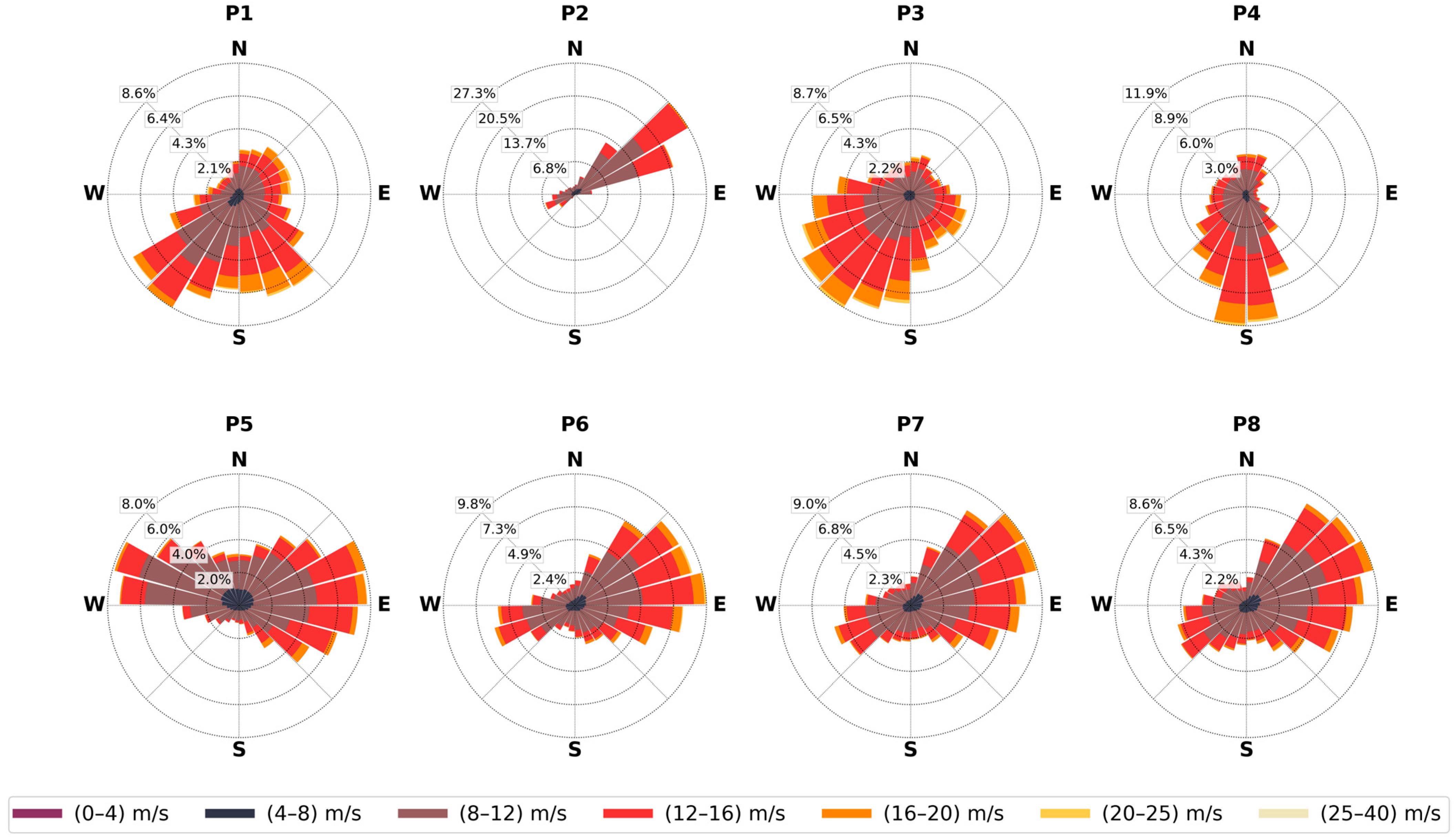 - Gandoin, R.; Garza, J. Underestimation of Strong Wind Speeds Offshore in ERA5: Evidence, Discussion and Correction. Wind Energy Sci. 2024, 9, 1727–1745. [Google Scholar] [CrossRef]