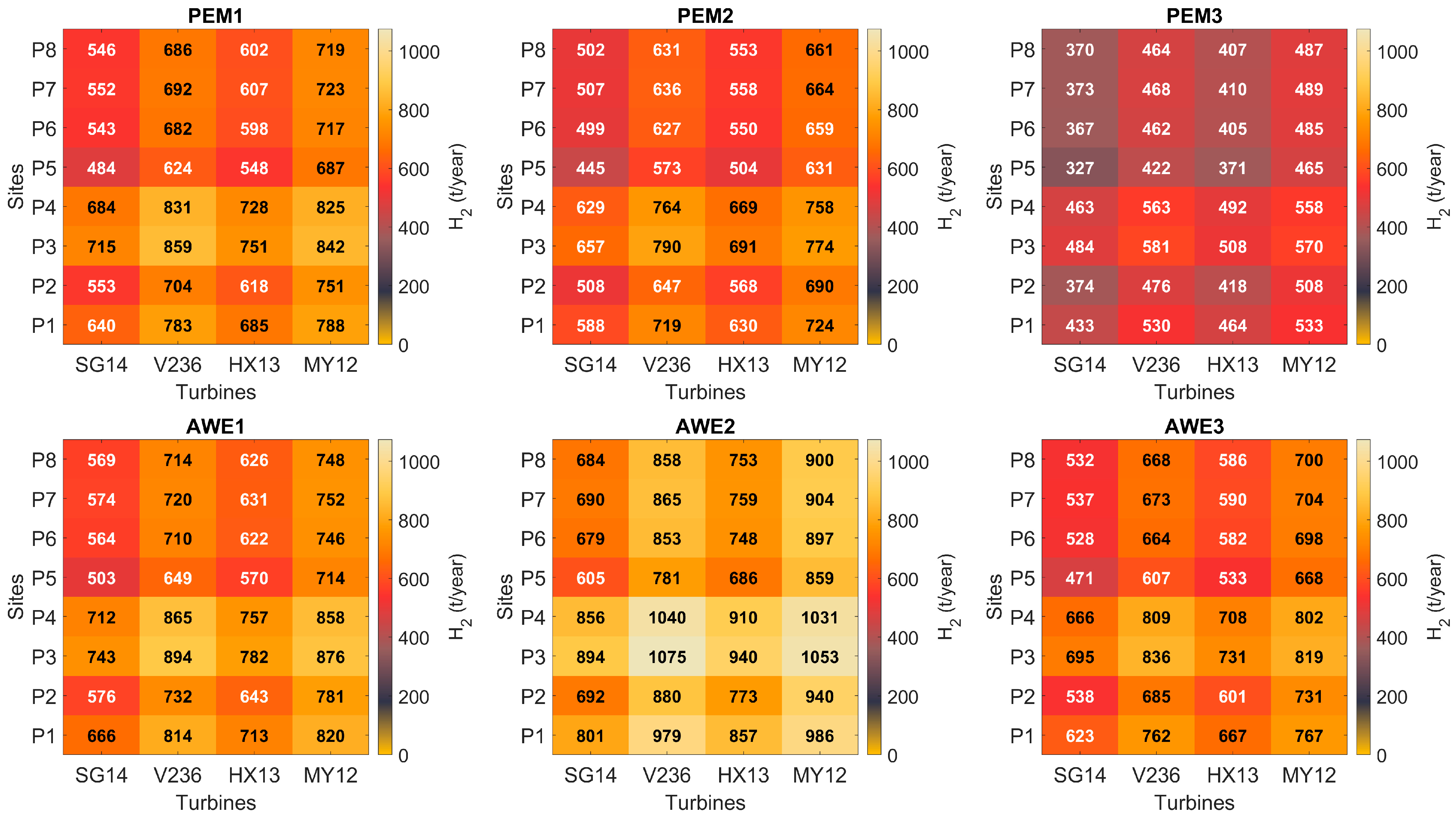 | Site | Turbine Code | PEM1 | PEM2 | PEM3 | AWE1 | AWE2 | AWE3 |