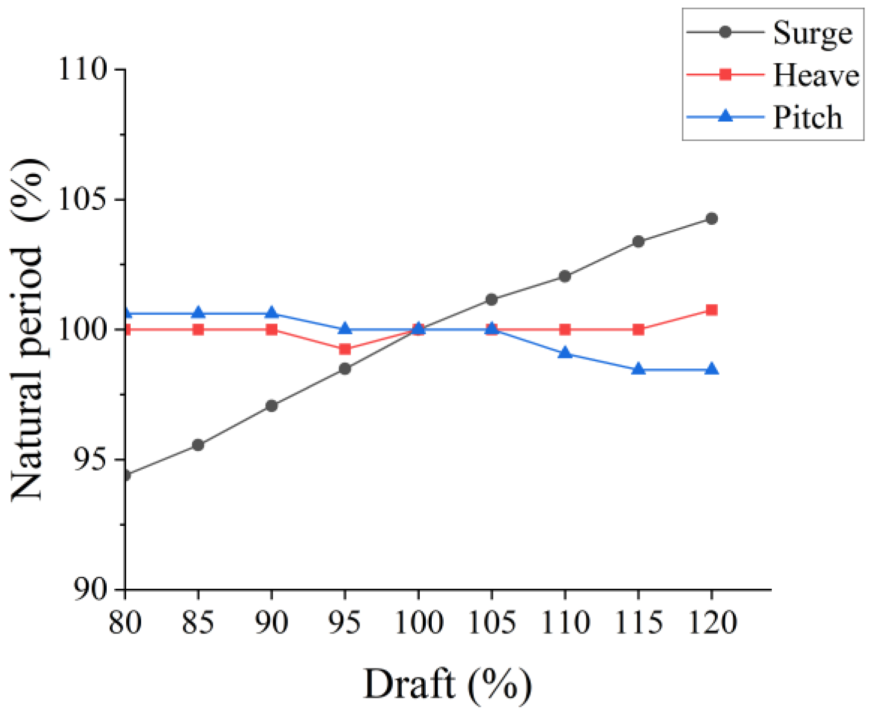 Natural period calculation results for different drafts.