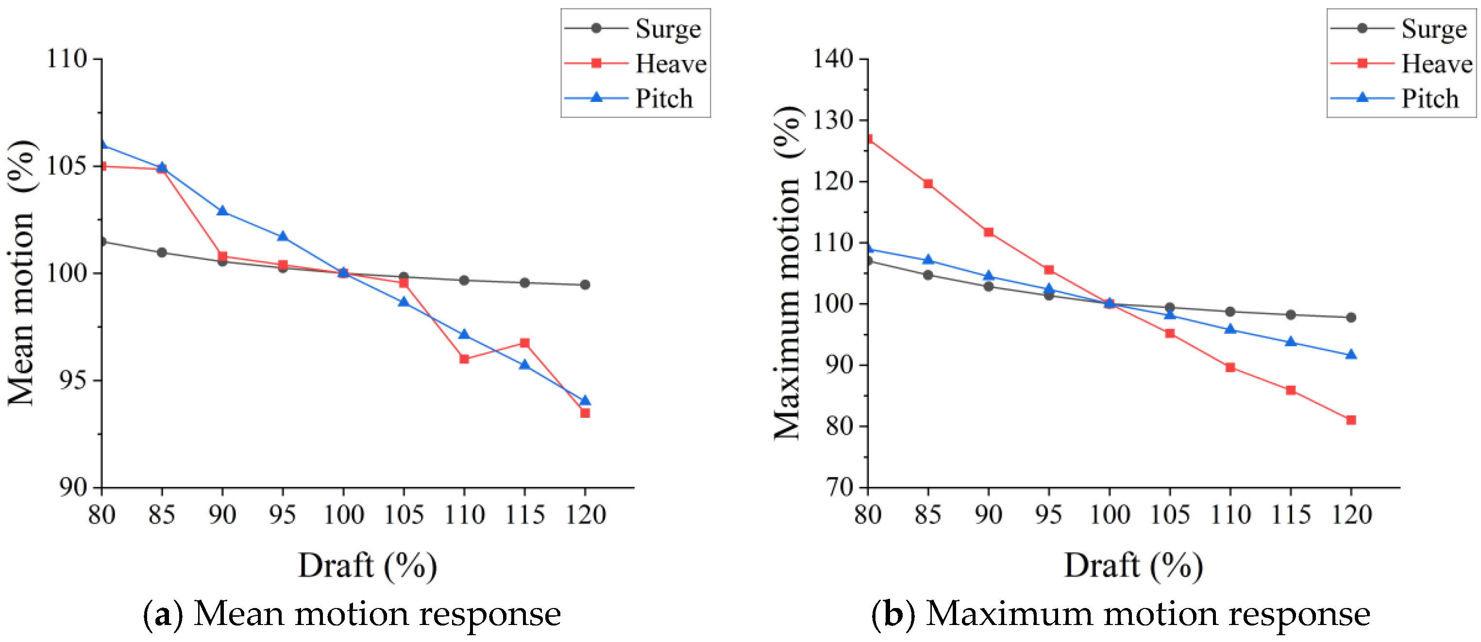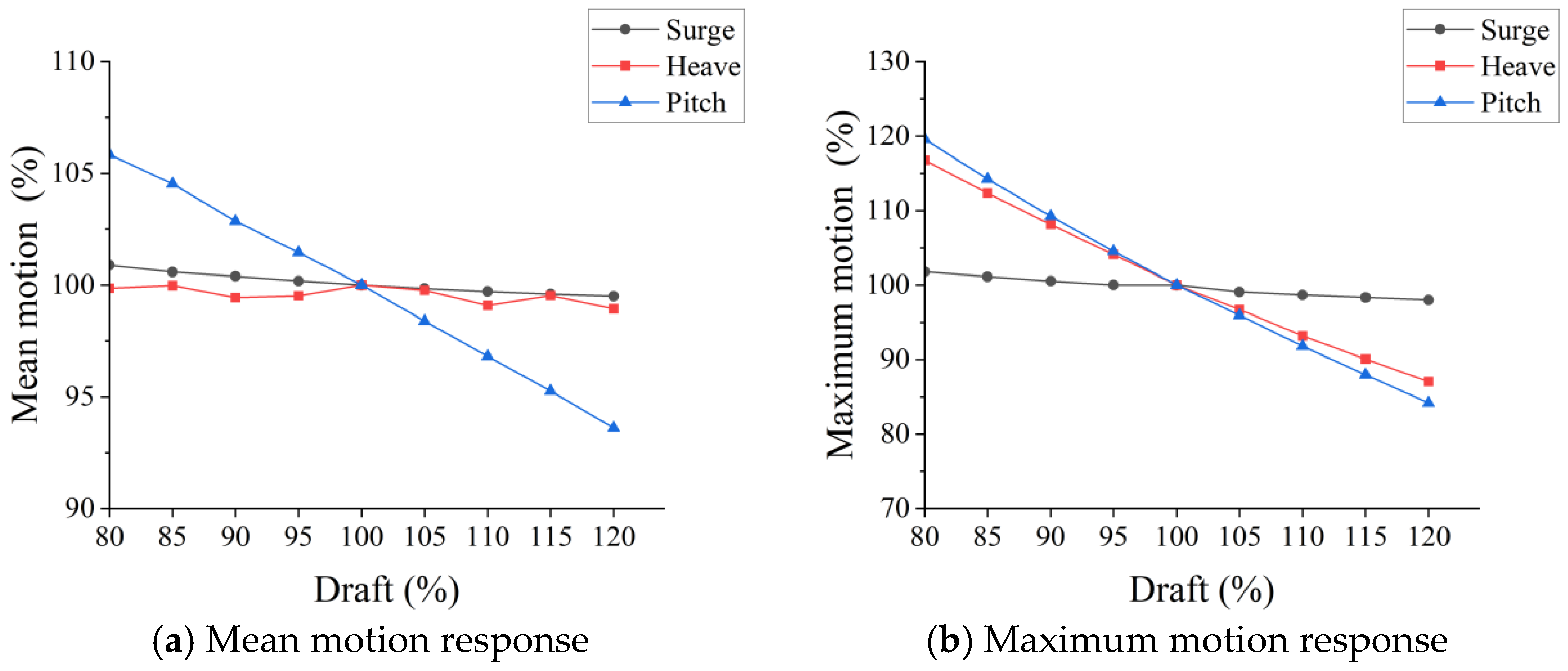 Motion response values for different drafts under extreme conditions.
