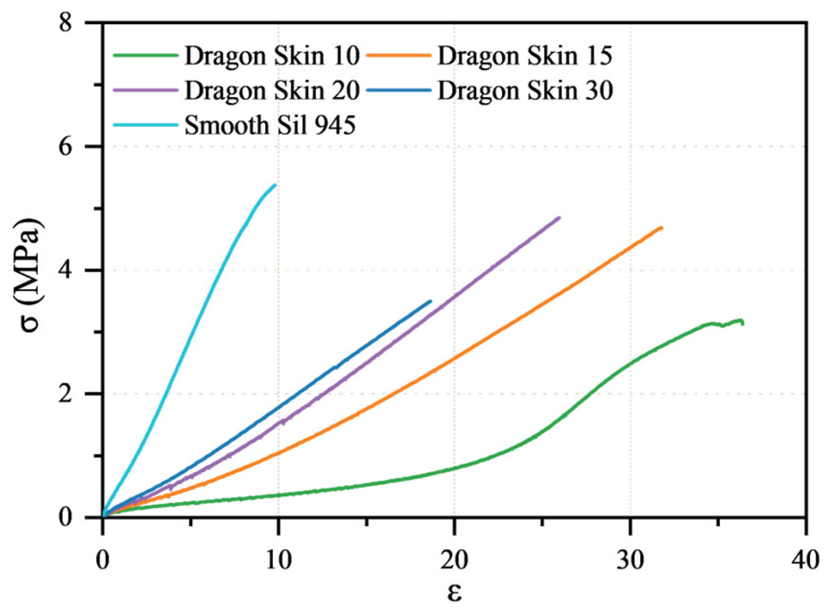 | Dragon Skin 30 | 30 | 3.45 ± 0.11 | 364 ± 18 |