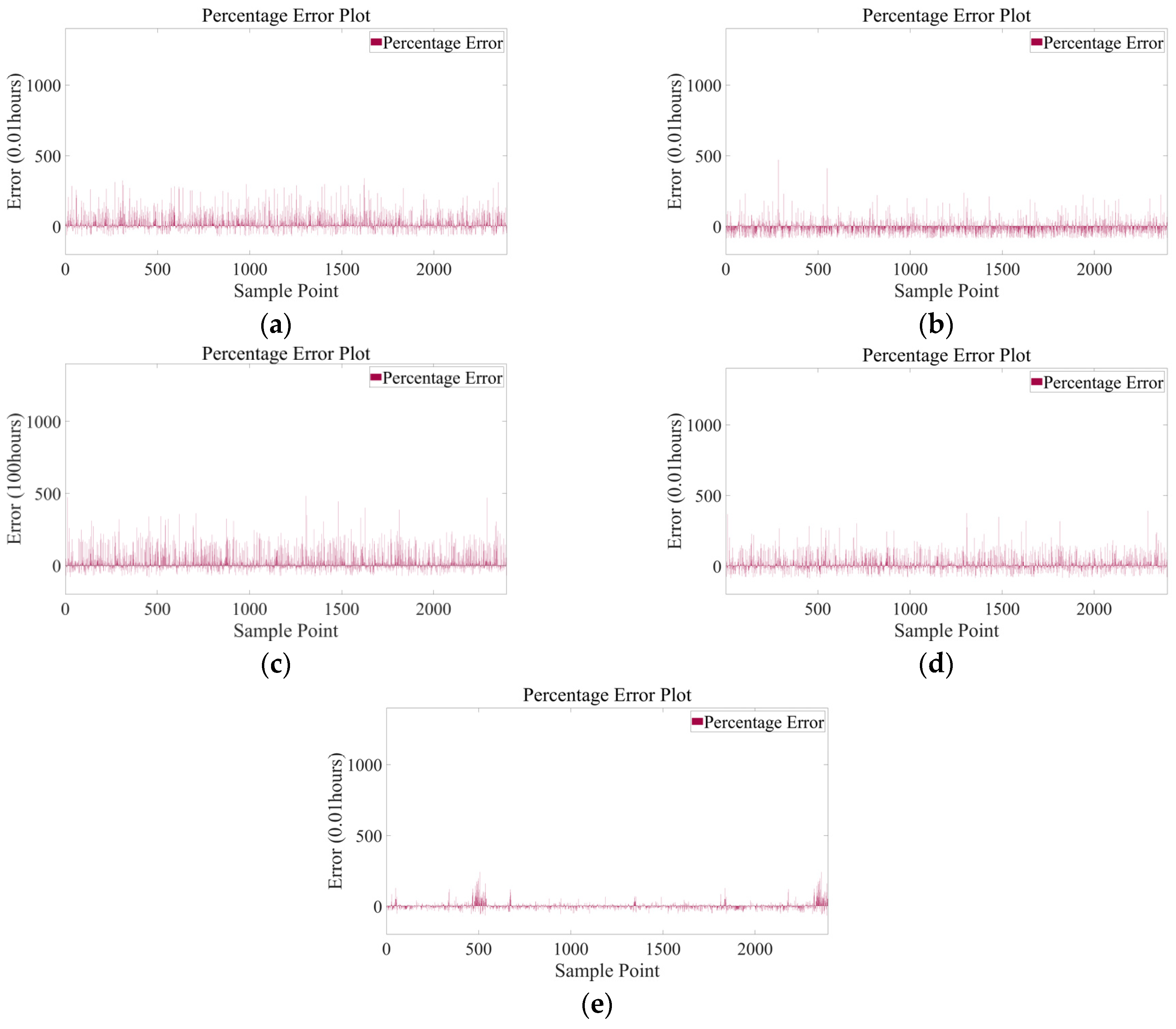 Figure 9e, the BO-LSTM model performs well in most experimental cases; however, a significant number of outliers appear in the fourth experiment, further confirming instability under certain conditions.