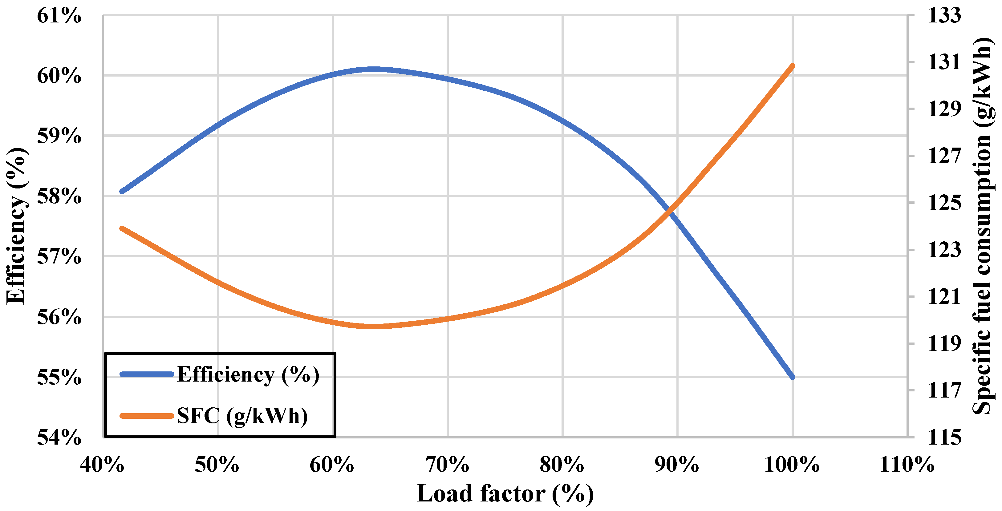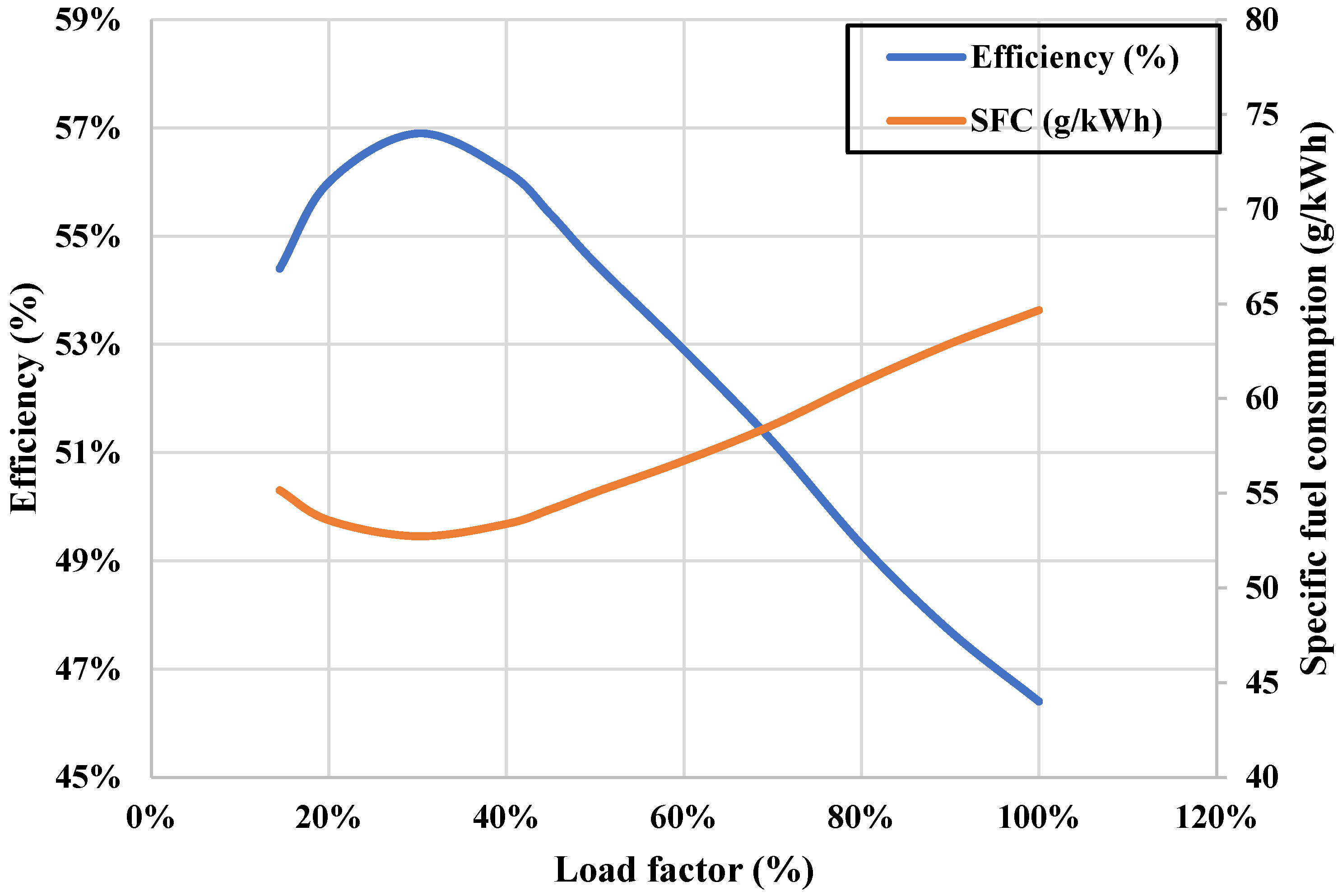 | SFC (load-dependent) | g/kWh | 200–220 | |