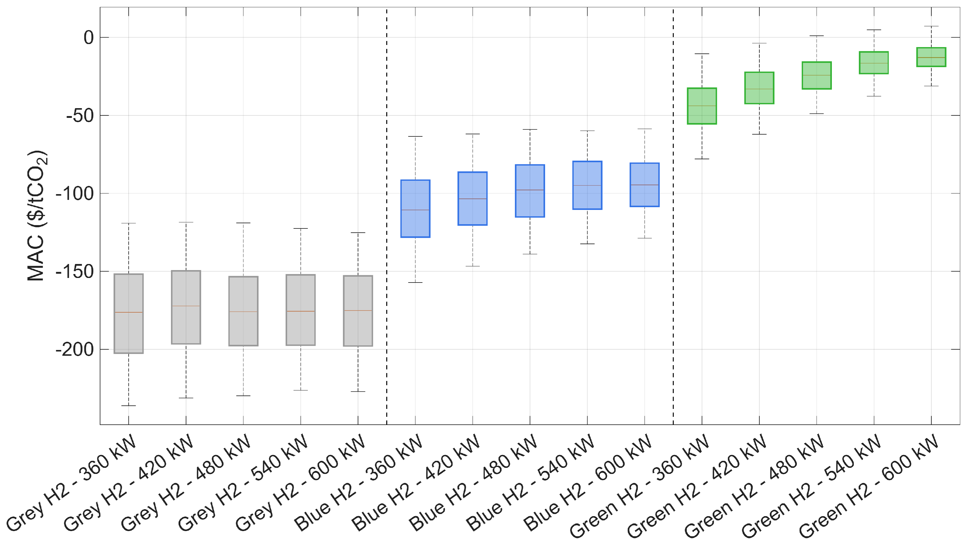 | Grey H2–Blue H2–Green H2 | $/t | 2000–3250–4500 | [72] | |