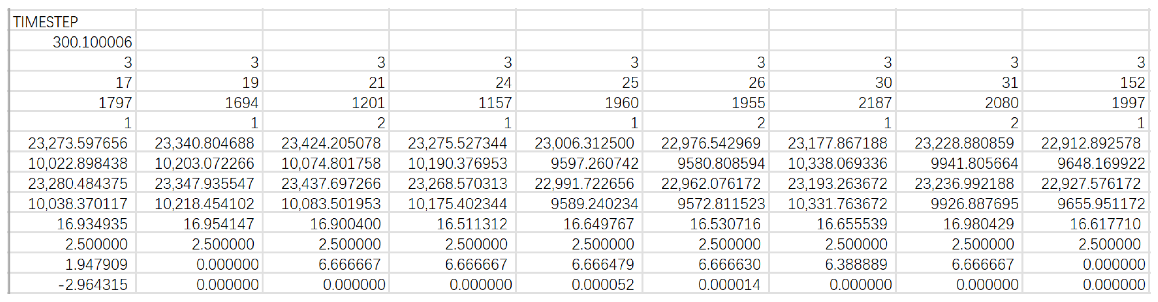 Figure 1 shows a fragment of the trajectory file exported from AIMSUN for subsequent SSAM analysis. Each record contains the simulation time stamp, vehicle identifier, spatial coordinates, speed, and acceleration, which together reconstruct the time-dependent trajectory of each vehicle. These data constitute the direct input for TTC and PET calculations and therefore form the evidential link between the microsimulation model and the surrogate safety assessment.