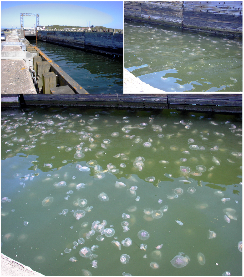 In 2003, 2004 and 2005, Aurelia aurita ephyrae and hydromedusae were present during spring, and A. aurita was present through the entire study period in 2003 (February to August). In April 2004, all jellyfish disappeared, but in August 2004, Aequorea vitrina became abundant. In both 2004 and 2005, disappearance and reappearance of jellyfish coincided with sudden changes in the salinity caused by incoming high-saline water from the North Sea. By applying energy budgets from laboratory experiments, Møller and Riisgård [13] showed that the jellyfish realized their growth potential until August in 2003, after which negative growth was observed. In 2003, A. aurita had the potential to control the zooplankton in the central part of Limfjorden from mid-May to August (half-life times between 0.8 and 6.2 days). In this period, almost no zooplankton or fish larvae were present. Therefore, Møller and Riisgård [13] suggested that release of phytoplankton from zooplankton grazing control due to the predation pressure (on zooplankton) by A. aurelia might have resulted in pronounced phytoplankton blooms (with up to 60 μg·chla·L−1 in 2003) triggered by the release of nutrients from the sediment during periods of oxygen depletion in the near-bottom water. A. vitrina had no demonstrable effect on the zooplankton population, but probably preyed on ctenophores. Møller and Riisgård [13] found that in some years A. aurita may be very abundant in Limfjorden and exert a considerable predatory impact on zooplankton and fish larvae during the summer, and they concluded that the abundance, species composition, and population dynamics of jellyfish in Limfjorden may, at irregular time intervals, be strongly influenced by dramatic, but apparently rather unusual hydrographic events, and therefore, hydraulic processes may explain otherwise unaccountably large variations in the plankton community (including jellyfish; see Table 1 for taxon diversity observed in Limfjorden).