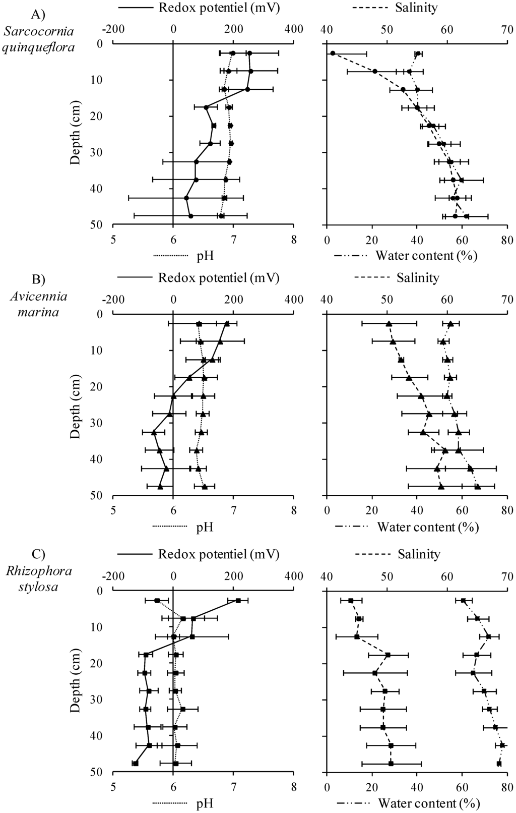 | Ratio | Fraction | Depth (cm) | Salt Flat | Avicennia Stand | Rhizophora Stand |