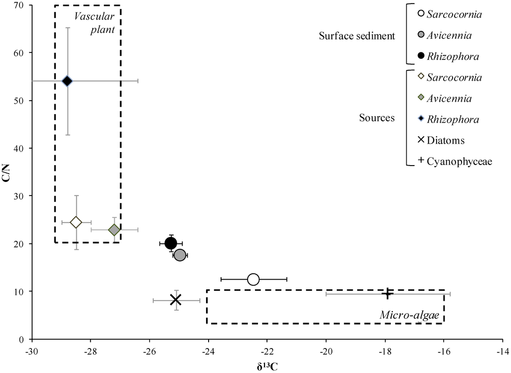 - Bouillon, S.; Dahdouh-Guebas, F.; Rao, A.V.V.S.; Koedam, N.; Dehairs, F. Sources of organic carbon in mangrove sediments: Variability and possible ecological implications. Hydrobiologia 2003, 495, 33–39. [Google Scholar] [CrossRef]