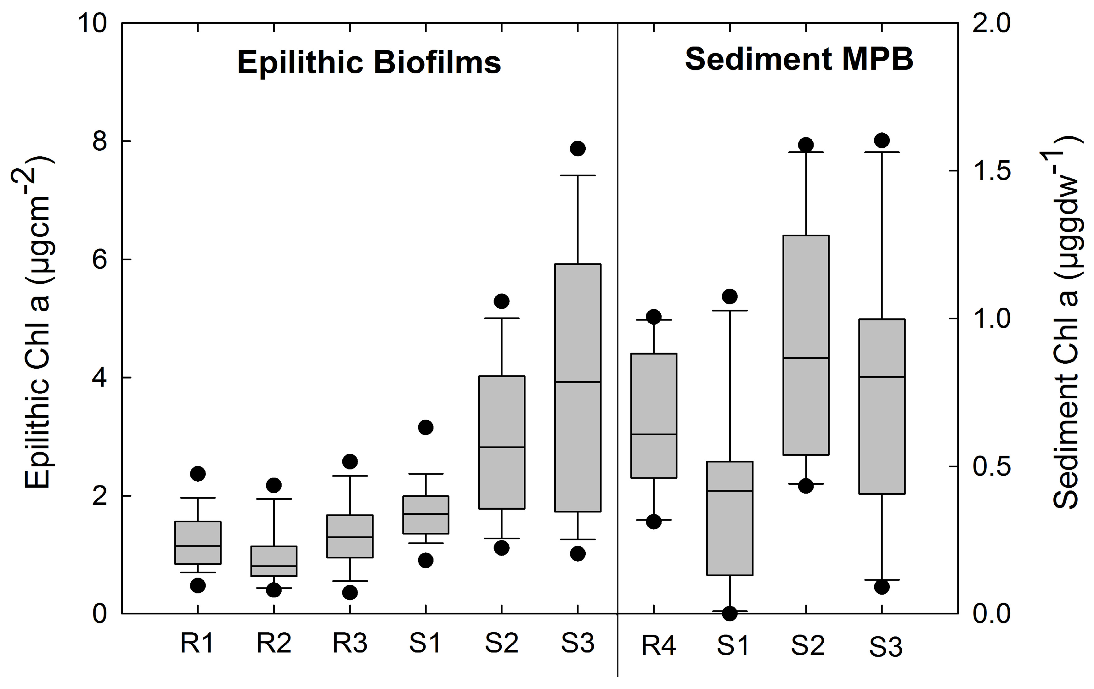 - Hansson, L.-A. Chlorophyll-a determination of periphyton on sediments: Identification of problems and recommendation of method. Freshw. Biol. 1998, 20, 347–352. [Google Scholar] [CrossRef]