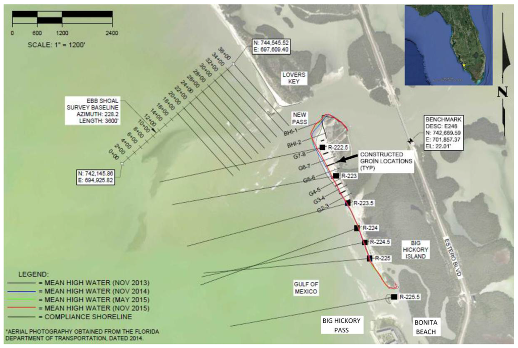 Funding was provided by the Pelican Landing Community Association (PLCA). Special thanks to Marie Martel, PLCA General Manager, and Tom Schemenaur. The authors wish to thank Dr. Robert Dean for his insightful observations on island morphodynamics and Doug Mann for his engineering expertise and contributions to the construction of the beach erosion mitigation project.