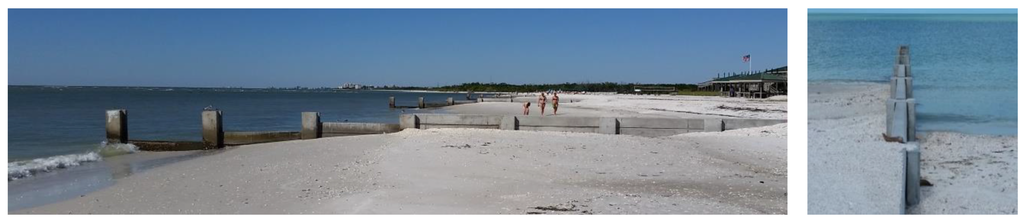 Photos of the king-pile groins on Big Hickory Island, FL.