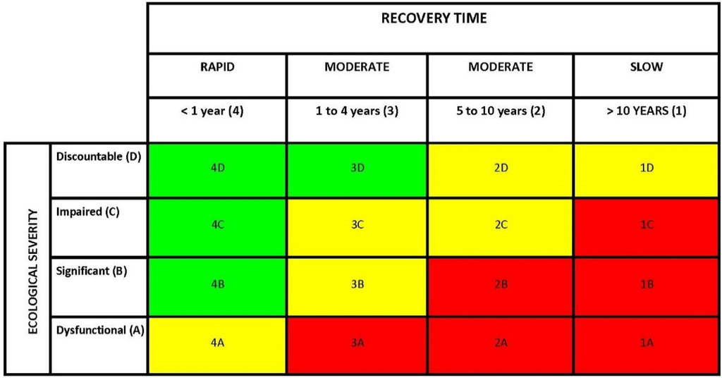 - Scenario 5—shoreline cleanup in artificial shorelines (increased risk to reptiles, amphibians, and macro-invertebrates).