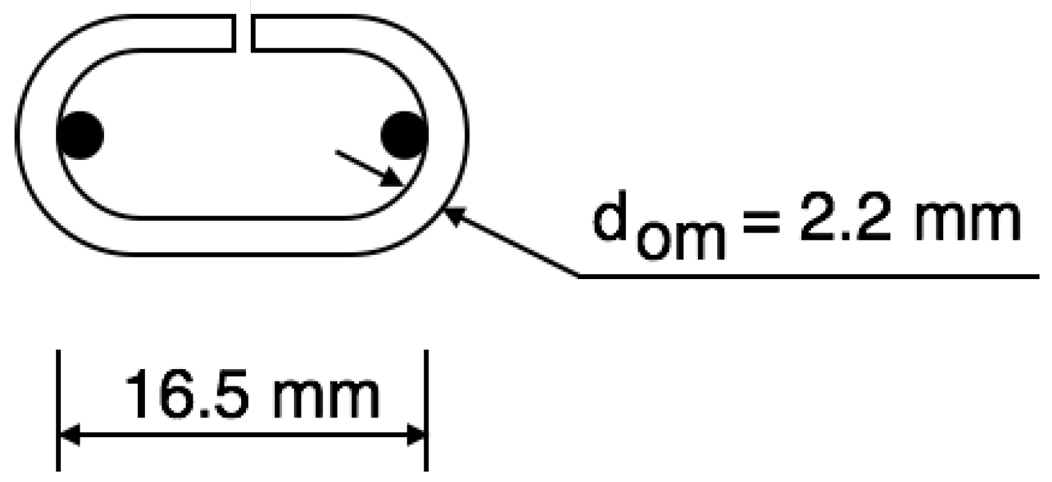 We chose a lacquered decoration chain with “open” links. “Open” means that the link loops were not welded after bending. The shape of the links is pictured in Figure 2.