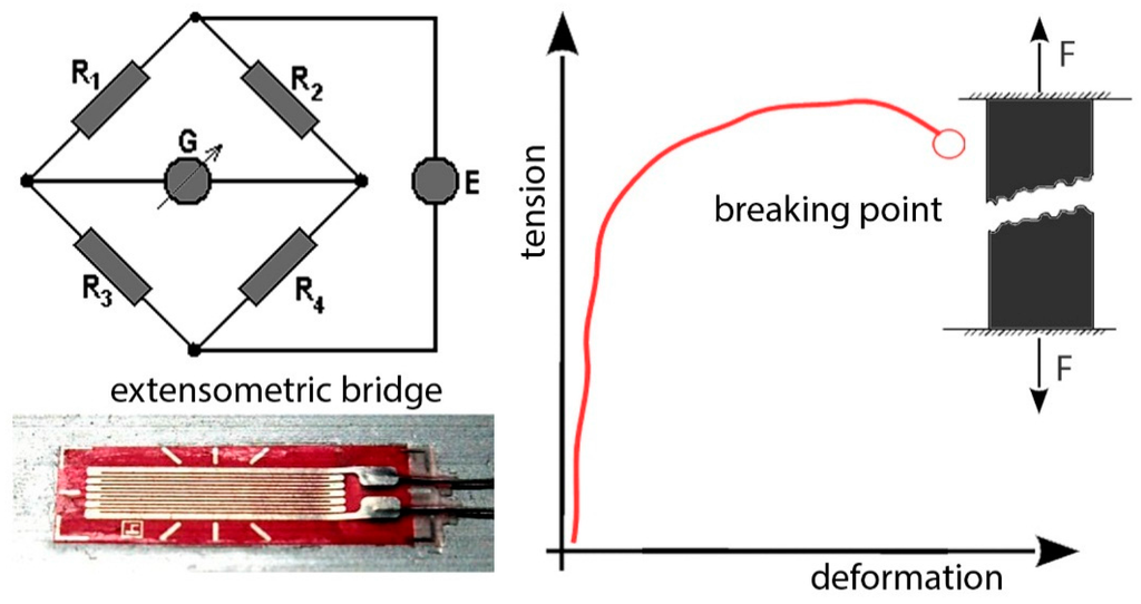 Low-intensity tensil test measures required for the calibration of the extensometric sensor. All measurements must be taken with extensometric bridge to avoid data fluctuation.