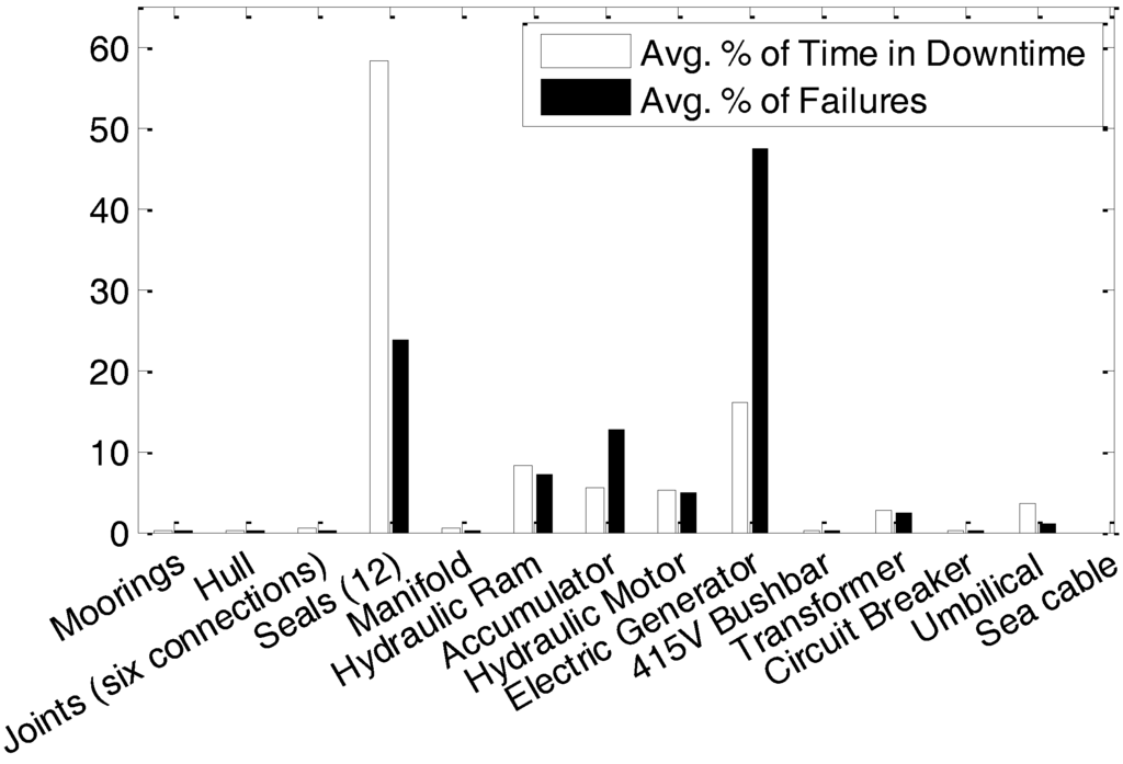 For this reason, the first step consists in using the capabilities of the computational model to identify those components of the device that most often have failed during the simulation, or, for reasons related to their repair time, constitute the majority of farm downtime.