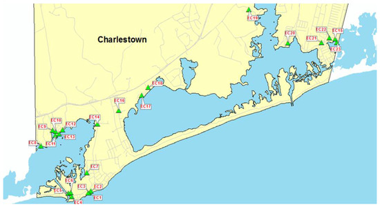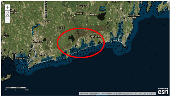 - FEMA. Flood Insurance Study for the Town of Charlestown, Rhode Island (Washington County); Community number 445395; FEMA: Washington, DC, USA, 1986.
