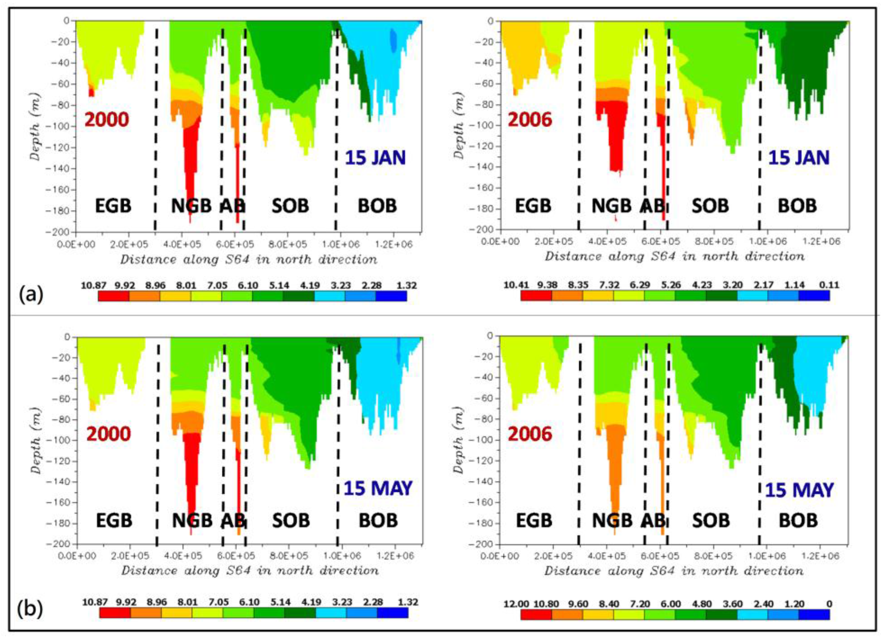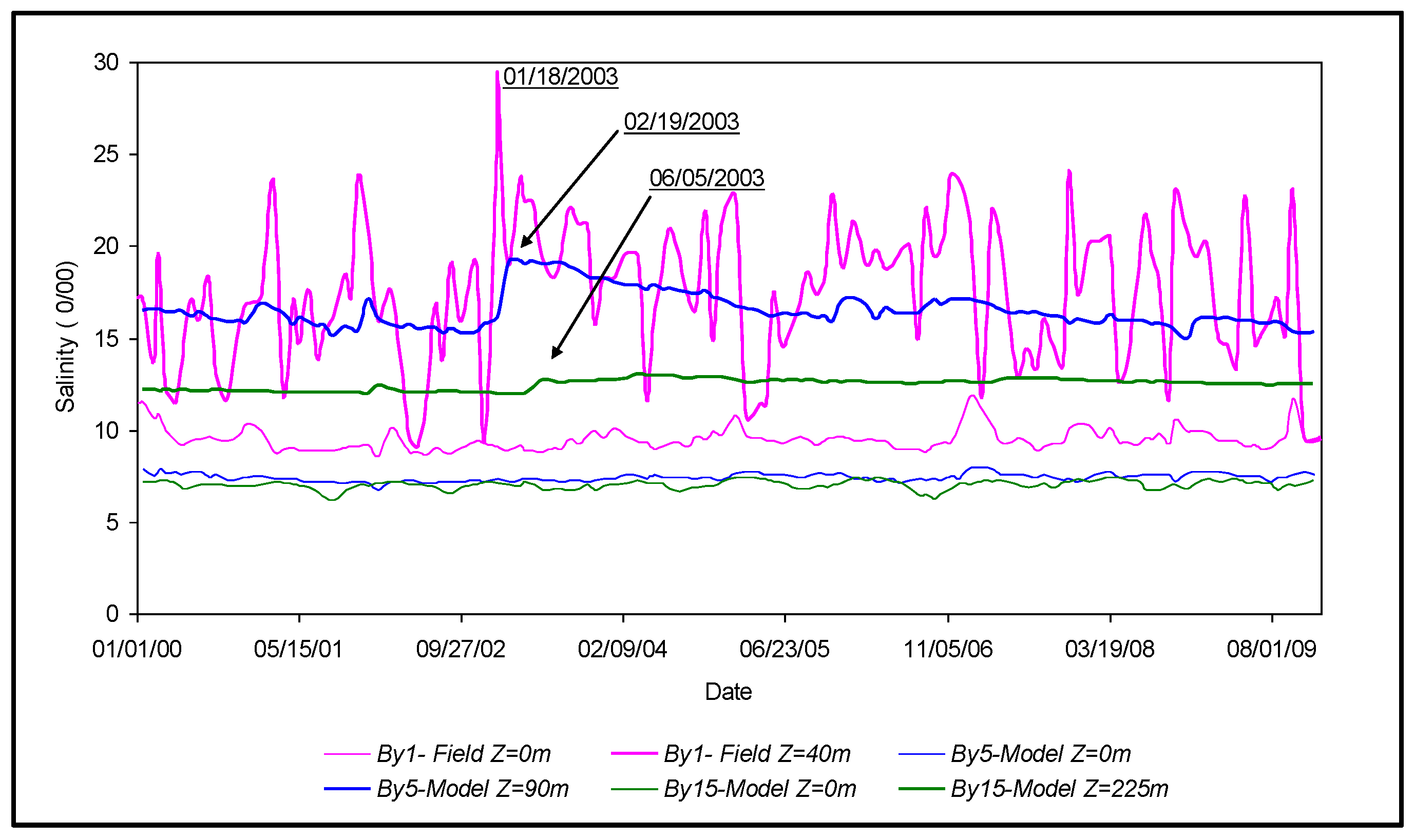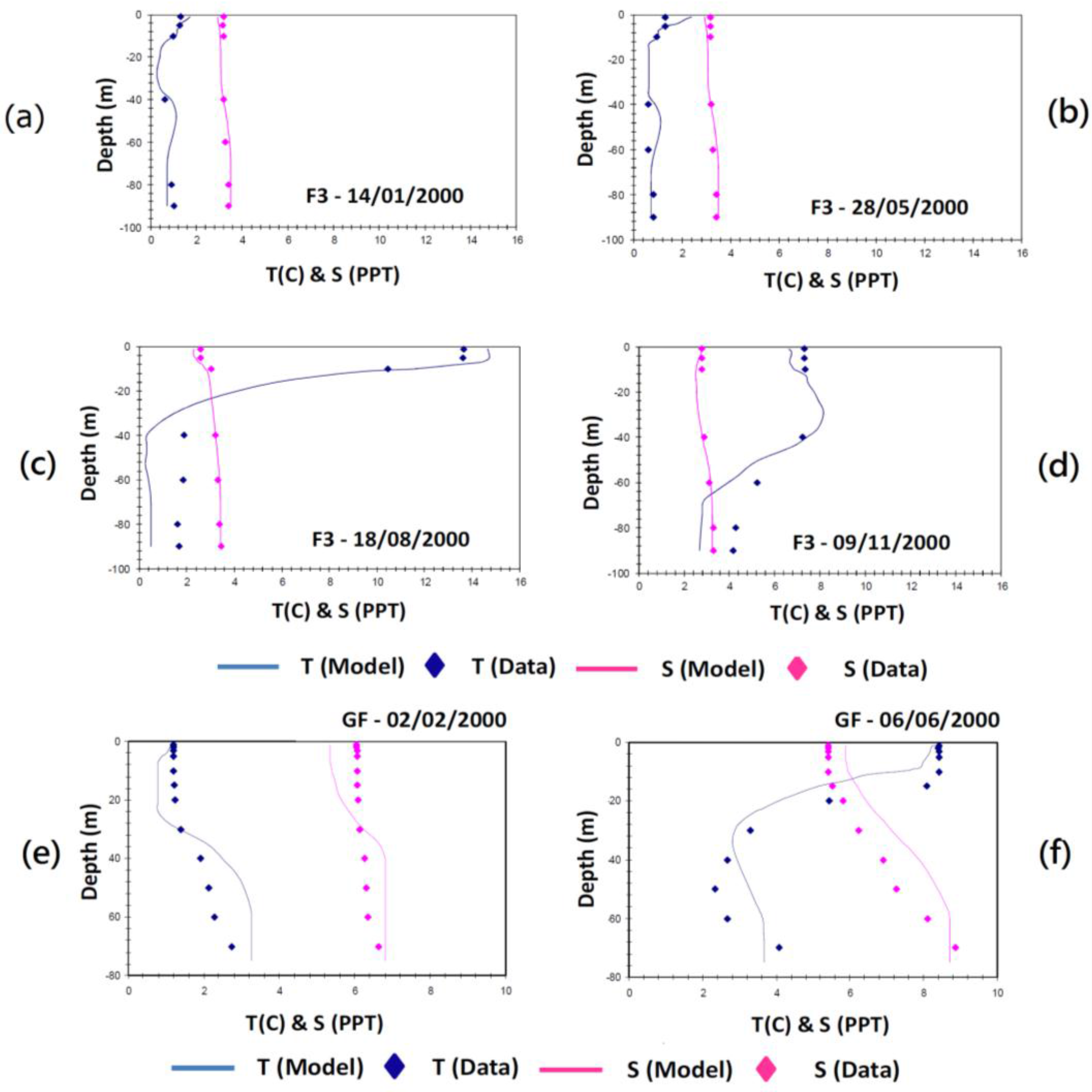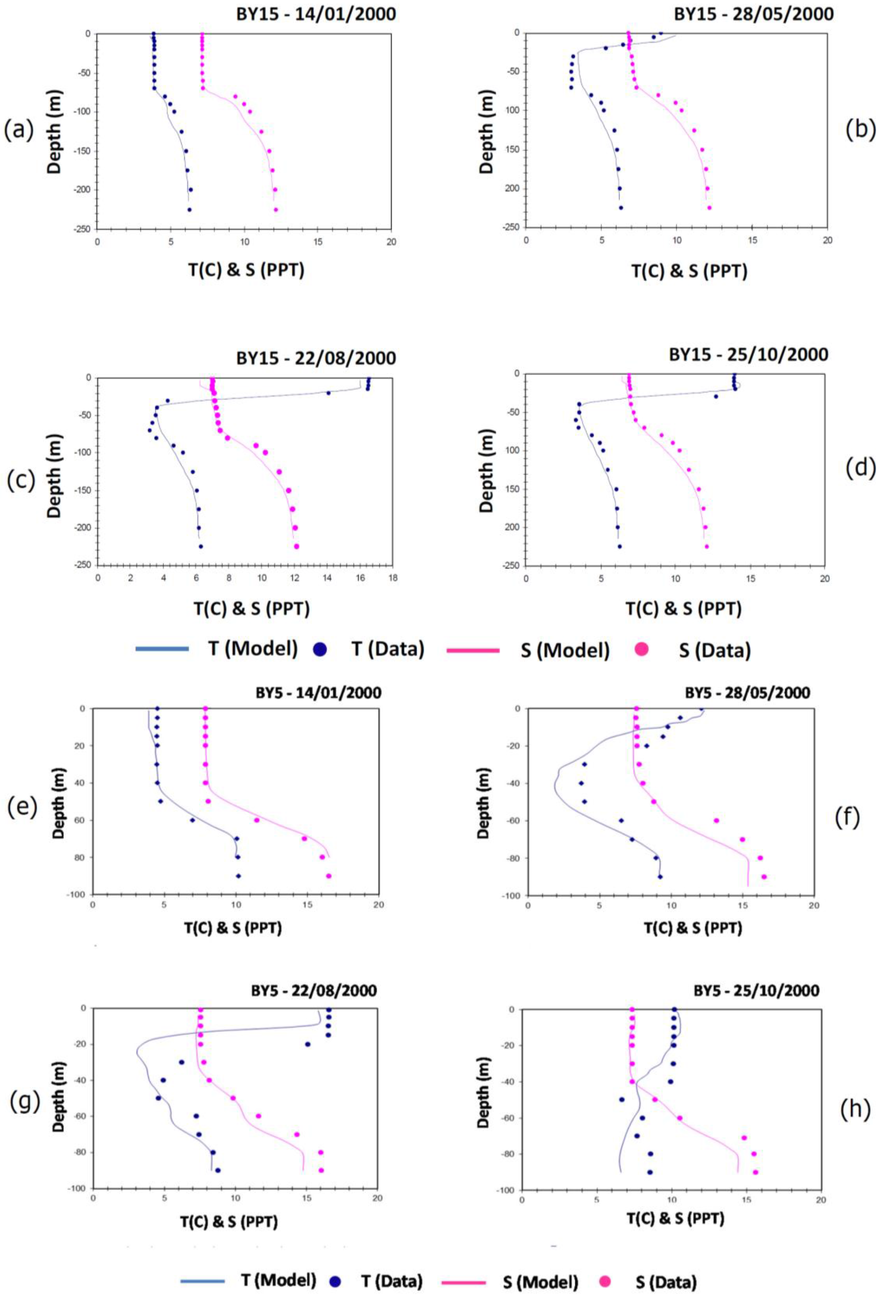Figure 3) were used to interpolate temperature and salinity for the entire model grid at the start of the model simulation on 1 January 2000.
