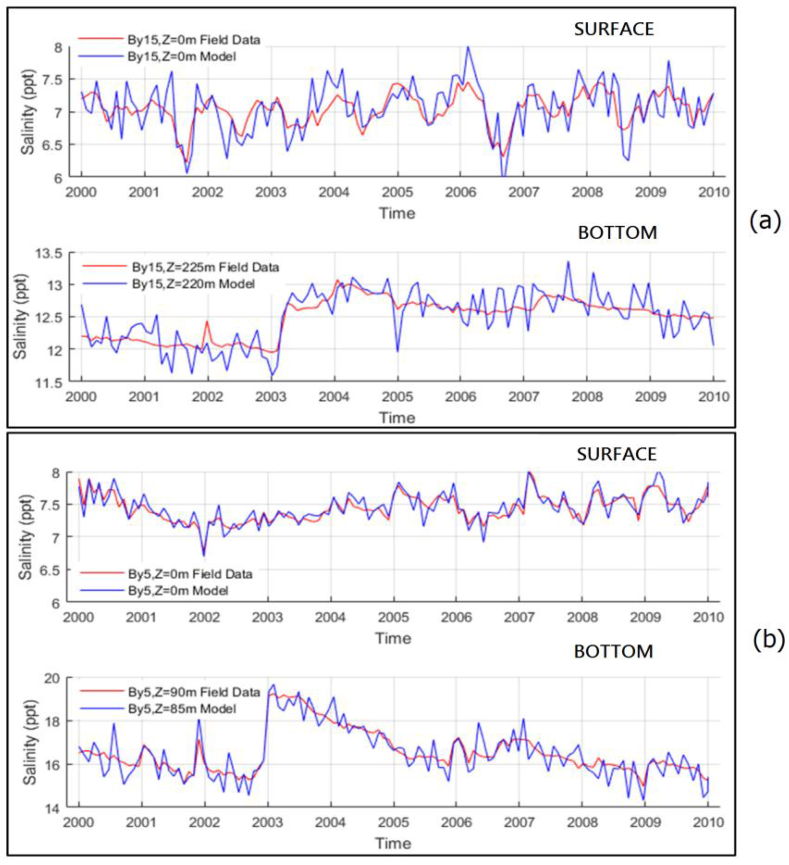 44]. Consequently, the salinity variations, which are mainly controlled by the water balance, are further modified.