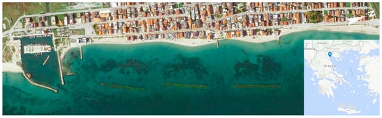 Location and satellite image of the study area at Paralia Katerinis, Greece ([47]; privately processed).