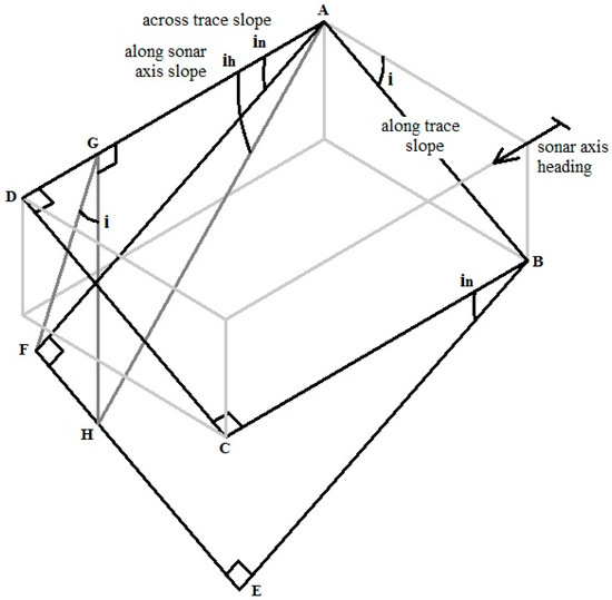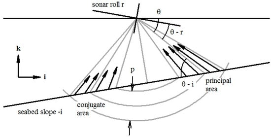 The angles and are positive clockwise on the starboard side, and anti-clockwise to port. These can be estimated from sidescan sonar data incorporating swath bathymetry measurement (e.g., de Moustier [11], Denbigh [12], Kraeutner, and Bird [13]).