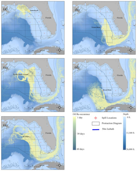 To be sure, while the number of oil spill impact assessments has increased dramatically since the Deepwater Horizon catastrophe [17], none have quantified or directly addressed the potential outcomes of a disaster in the Eastern GOM Planning Area. This is not to say that site-specific research is nonexistent. On the contrary, there is a growing body of research concerning site-specific impact and risk quantification in Europe [18,19,20,21], coastal Asia [22,23], and some parts of the United States [24,25]. However, the major substantive foci of these studies are on methodological development. With recent proposals to open the GOM Eastern Planning Area to oil exploration and production, the purpose of this paper is to develop a broad understanding of the risks and impacts associated with drilling in the Eastern GOM. We apply the core methodological procedures found across many oil spill risk and impact methodologies (e.g., [17]) to the Eastern GOM. This process of tracking the final fate of oil, from blowout locations to the shoreline, will provide some insight into the behavior of oil spills in the area along with their potential impacts to the state of Florida and beyond.