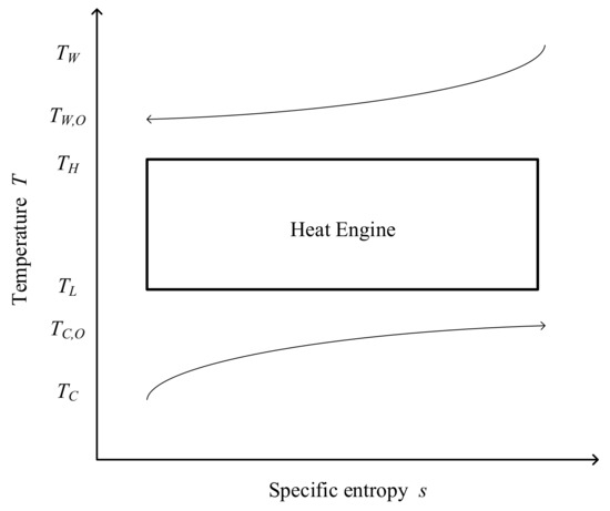 From Equations (1) to (10), the work output is one degree of freedom as a function of TW,O or TC,O. Then the work output can be maximized by or . The maximum work considering the heat exchanger performance Wm,NTU is expressed as: