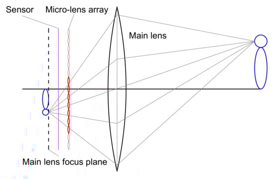 - Perwass, C.; Wietzke, L. Single lens 3D-camera with extended depth-of-field. In Proceedings of the SPIE, Human Vision and Electronic Imaging XVII, Volume 8291, Burlingame, CA, USA, 22 January 2012. [Google Scholar]
