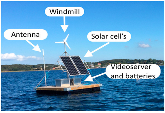 On the pontoon, two waterproof boxes housed the electronics, power supply controls, and batteries. Cables from video cameras and light sources were connected to the box containing a custom-built video server. The server was connected to a mobile phone link (supplied by Telenor, 1 TB broadband) and to a mobile phone antenna, attached at the end of a 5 m long carbon fiber mast (Figure 2).