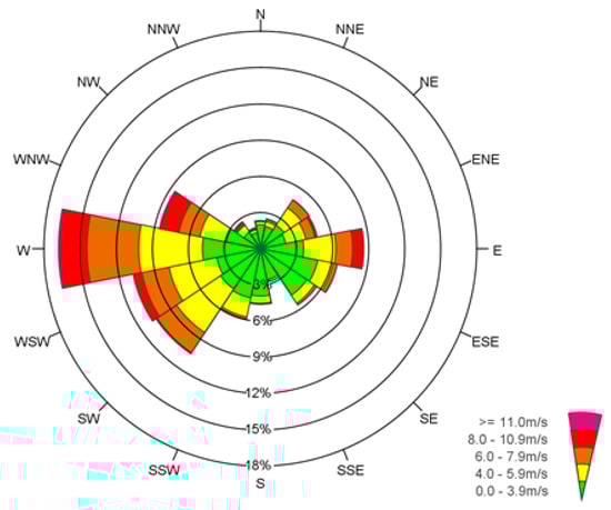 Mean wind, maximum wind, and the direction of the wind, measured at the local station (Sydfyns Flyveplads, station number 612400) by The Danish Meteorological Institute from September 2016 to August 2017.